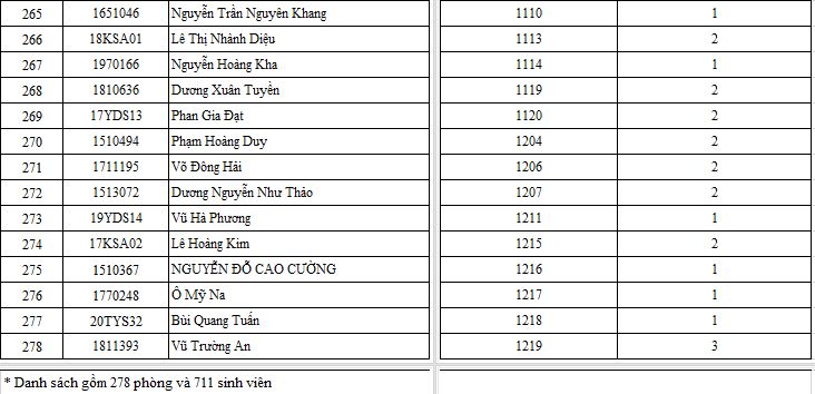 - Số sinh viên ở lại KTX là 711 sv (gồm 19 sv nước ngoài).