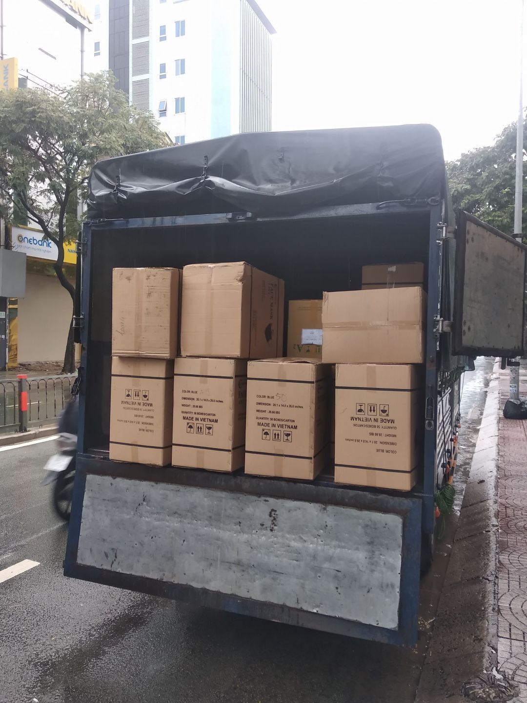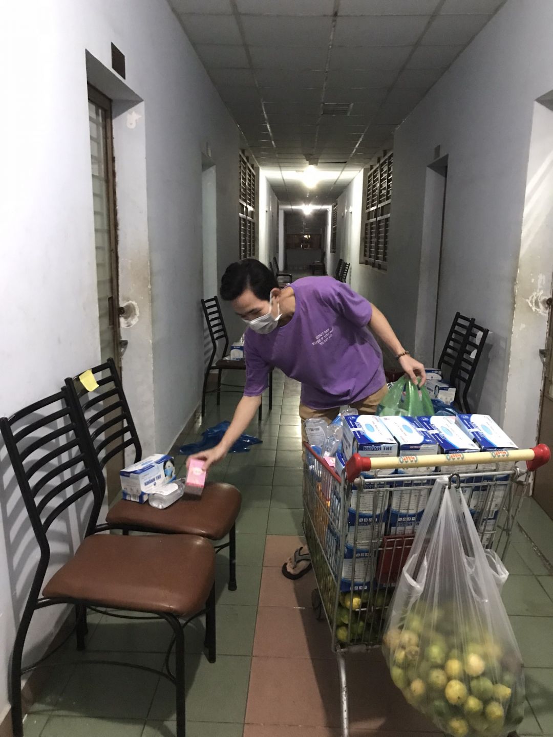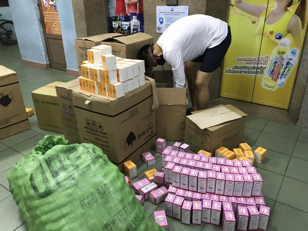 Trưa và chiều nay 6x nhận 500 bộ đồ bảo hộ cấp 2 (7 món), 12 thùng Vitamin C (100 hộp/thùng) + 50 hộp lẻ,  25 thùng Khẩu trang y tế (50 hộp/thùng). Hai bữa trước thì nhận 40 thùng Dung dịch sát khuẩn (24 bình/thùng)