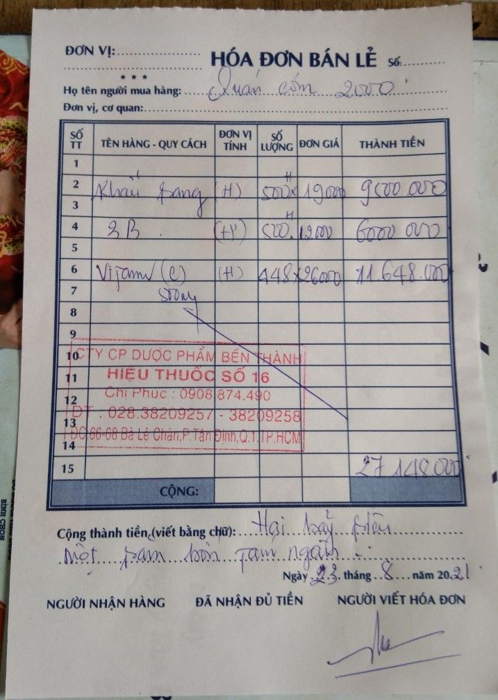 Tiger gửi số lượng và hóa đơn mua thuốc đợt 7.