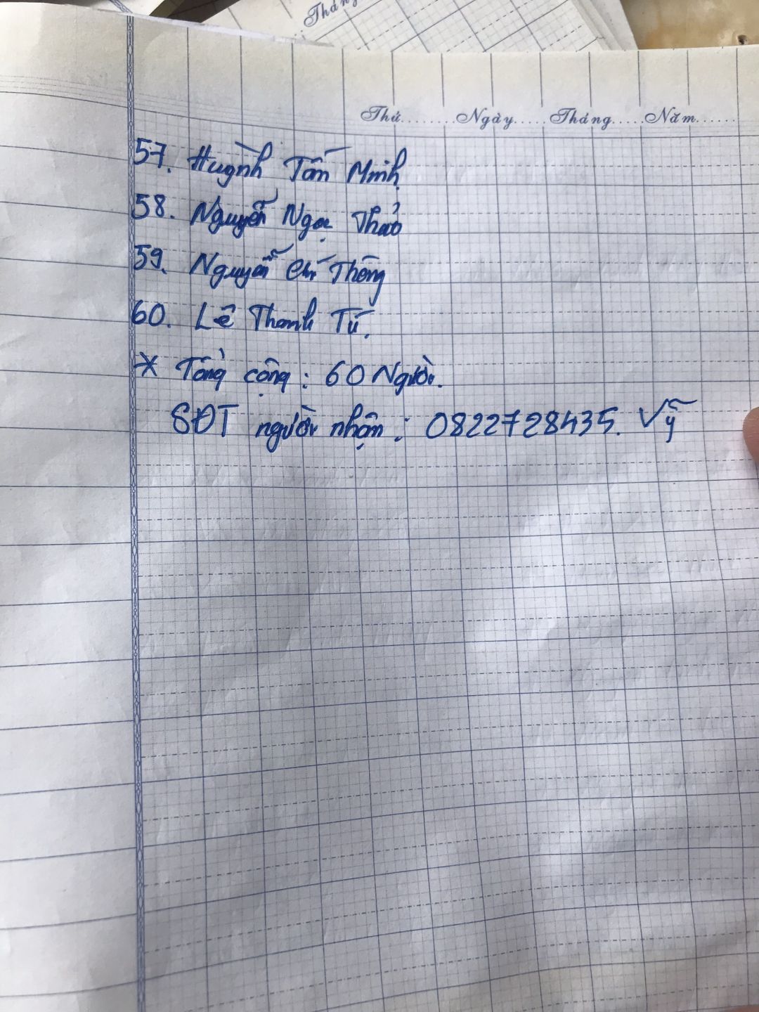 - Người gởi danh sách: Nguyễn Hoàng Tú, điện thoại: 0763347059