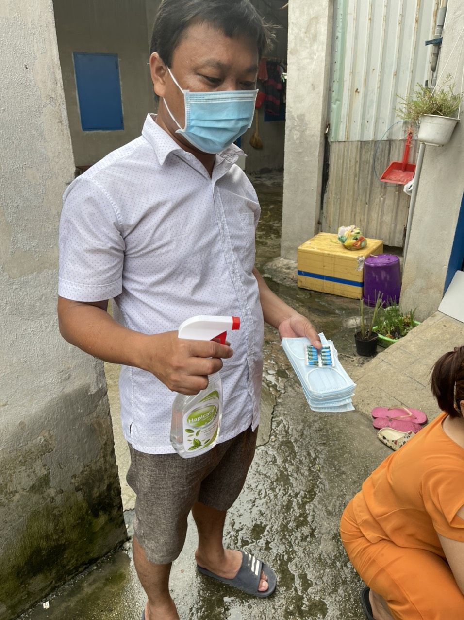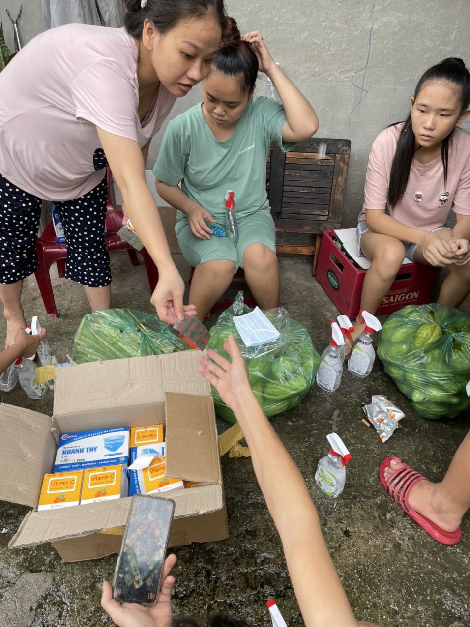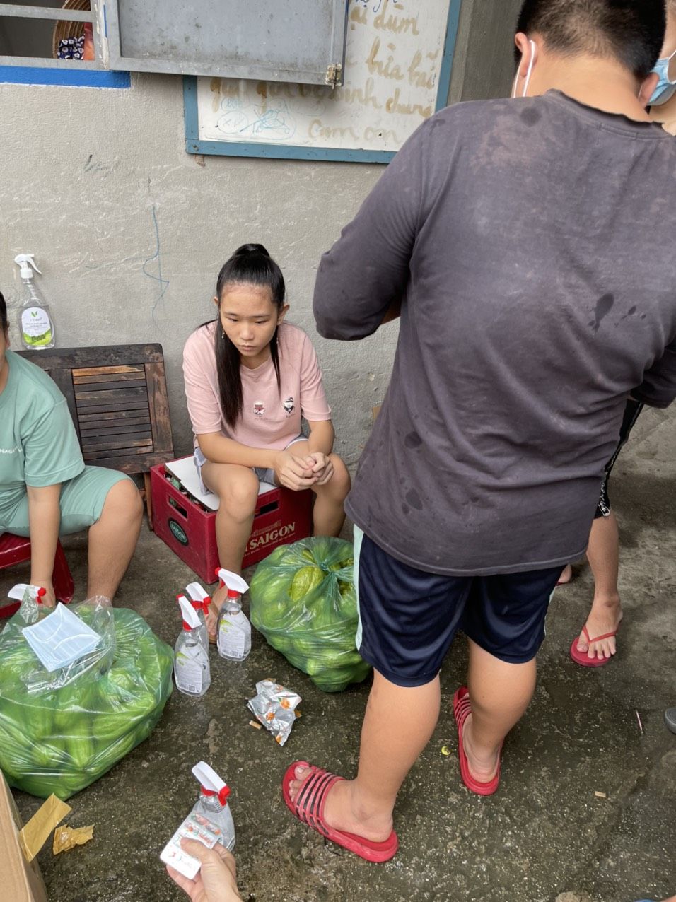 Chúng ta sẽ hỗ trợ rau củ và phần thuốc, khẩu trang, dung dịch sát khuẩn còn tồn nhé.
