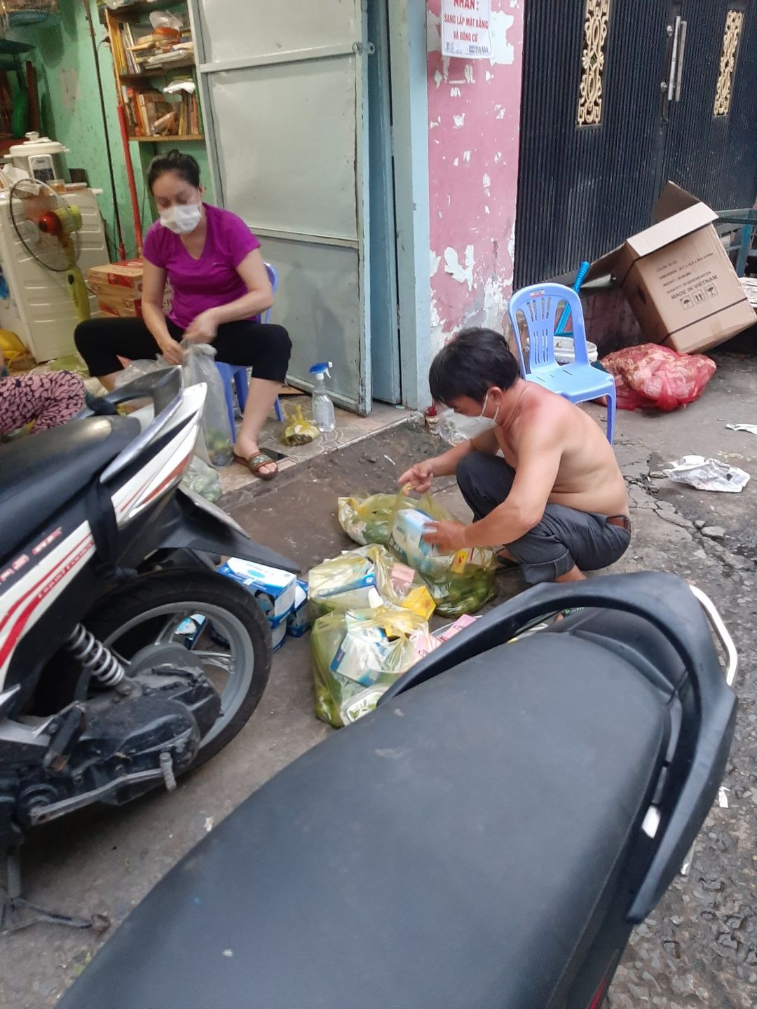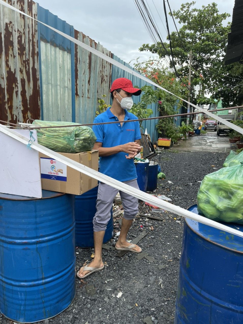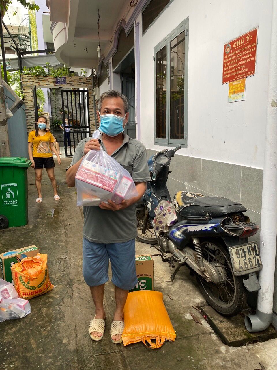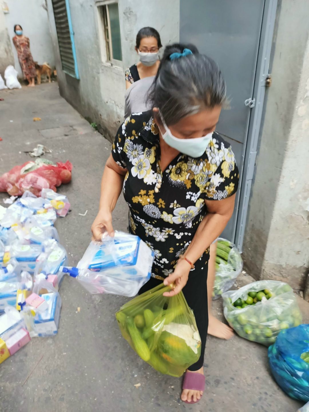 Chúng ta sẽ hỗ trợ rau củ và phần thuốc, khẩu trang, dung dịch sát khuẩn còn tồn nhé.