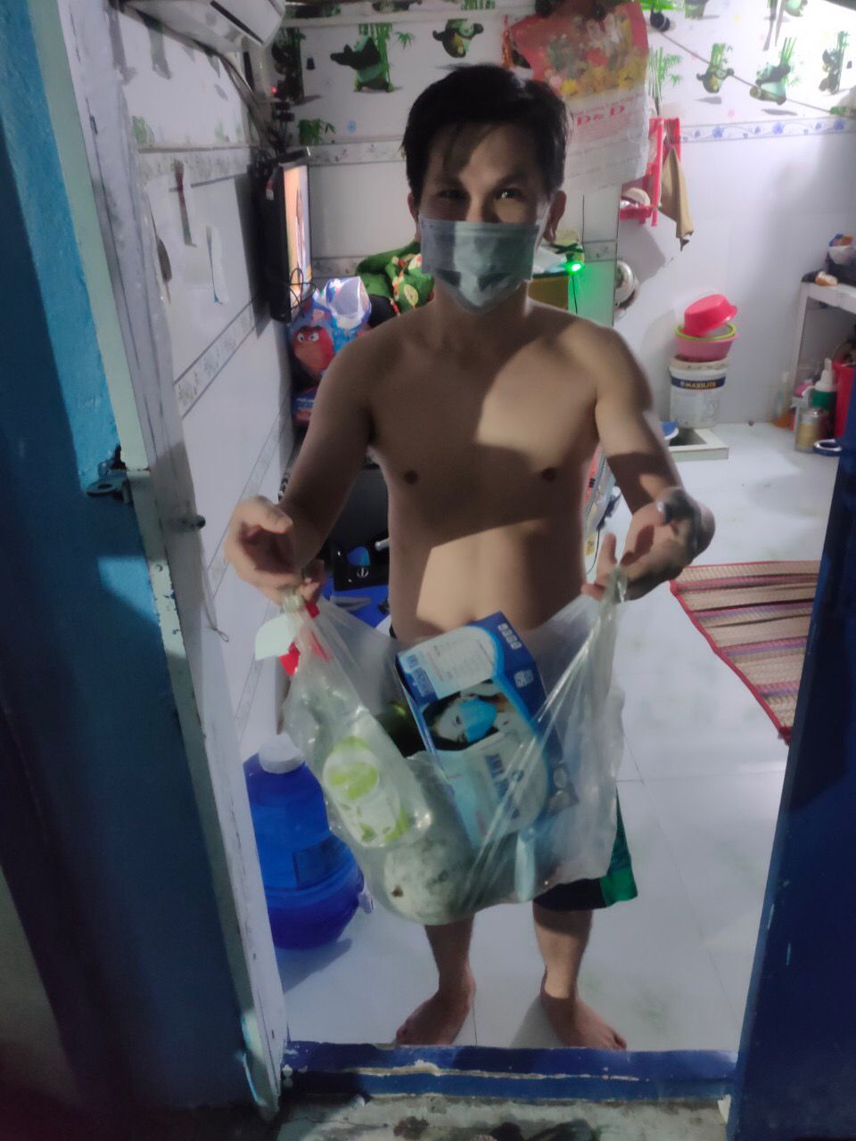 Hôm nay Anna xin được cập nhật các hình ảnh mà anh Khôi- công an khu vực khu phố 5 đã đi tặng thuốc sát khuẩn, khẩu trang, vitamin c cùng rau củ mạnh thường quân gửi tặng. Xin cảm ơn rất nhiều các mạnh thường quân và Người tôi Cưu mang làm cầu nối.