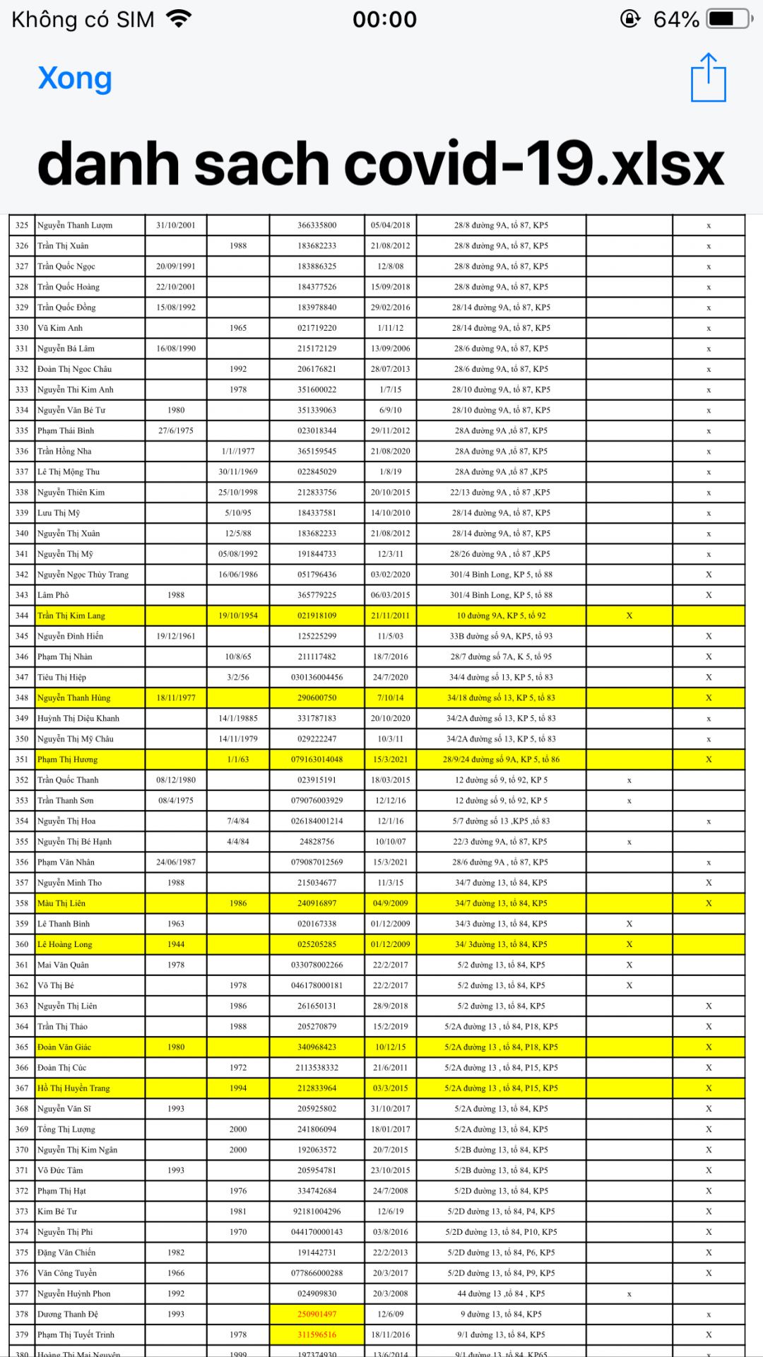 Anh Nguyễn Minh Phương, chủ tịch Mặt trận phường Phú Thọ Hòa, quận Tân Phú gởi danh sách 200 hộ khó khăn, hộ bị cách ly trên địa bàn phường đề xuất hỗ trợ khẩu trang, nước sát khuẩn, thuốc bổ giúp bà con hạn chế lây nhiễm, tăng cường đề kháng vượt qua dịch bệnh.
