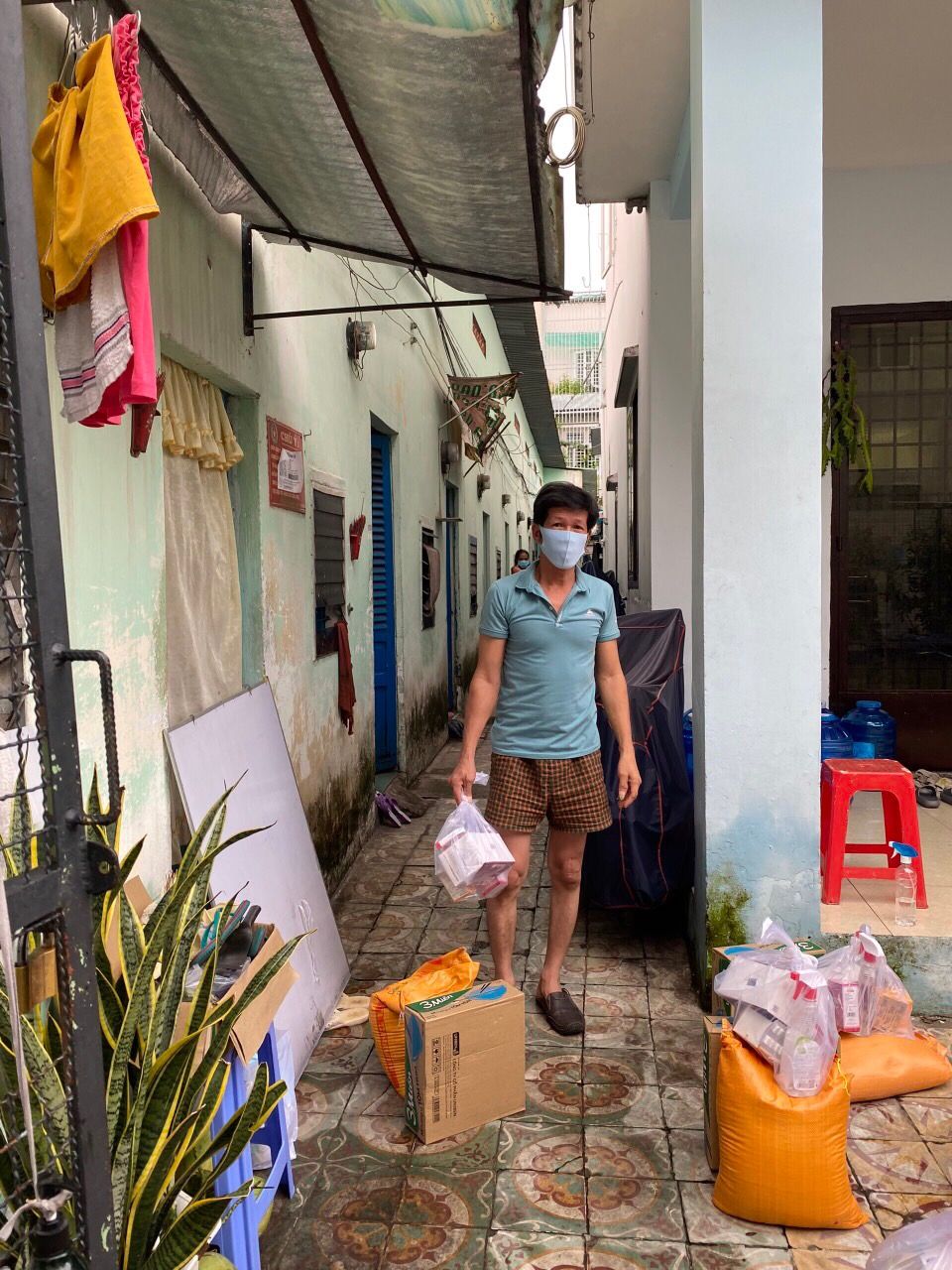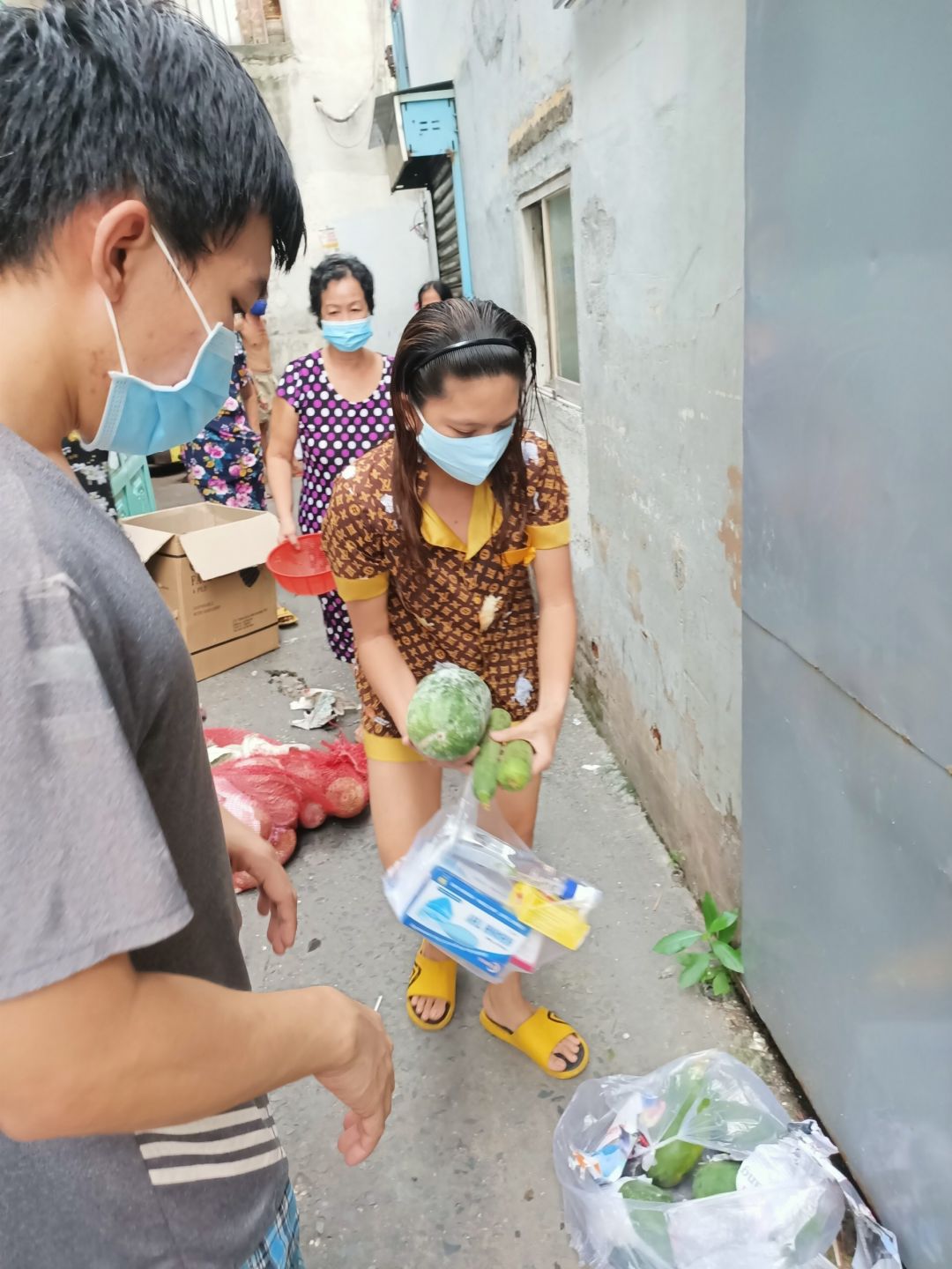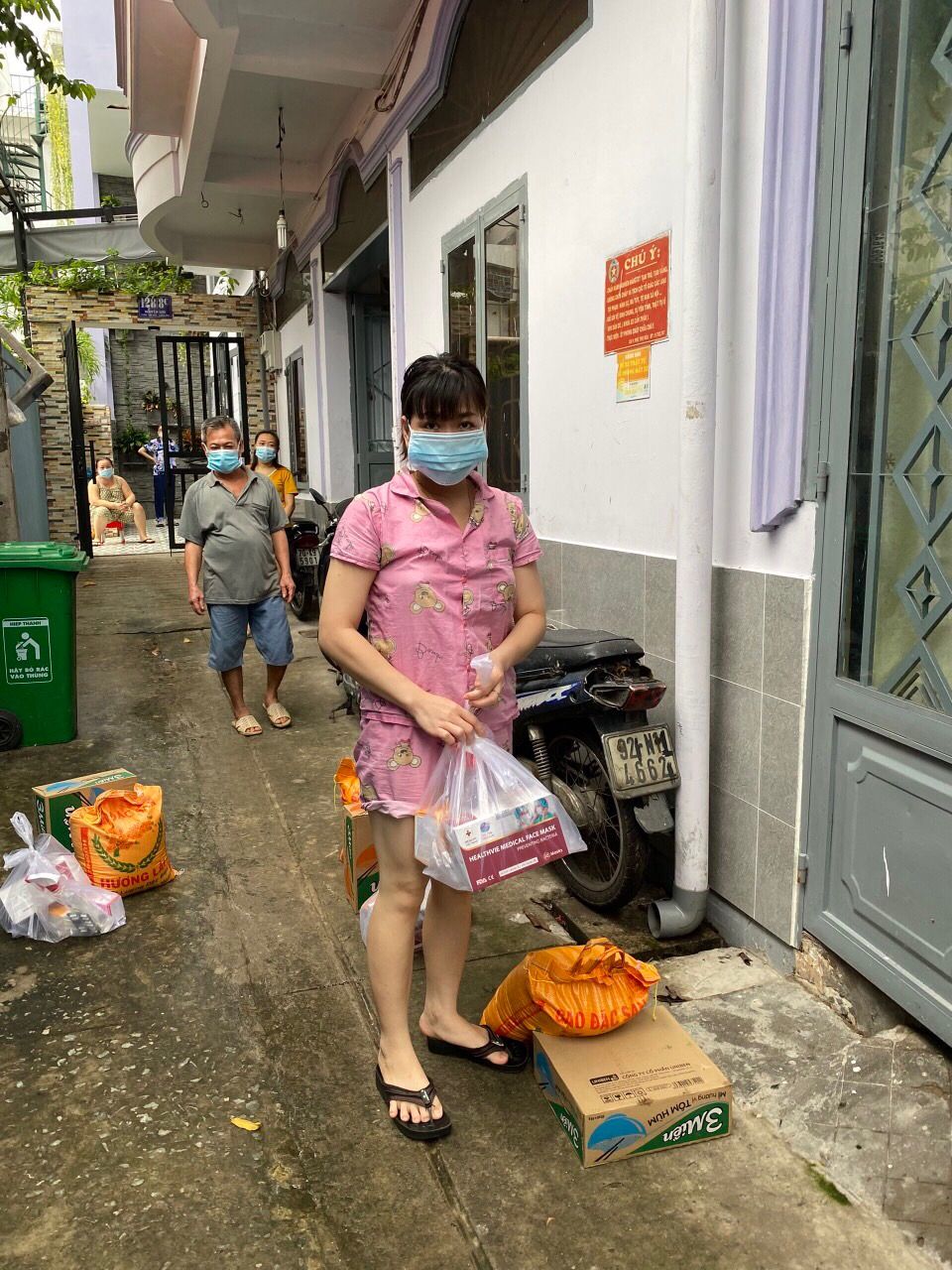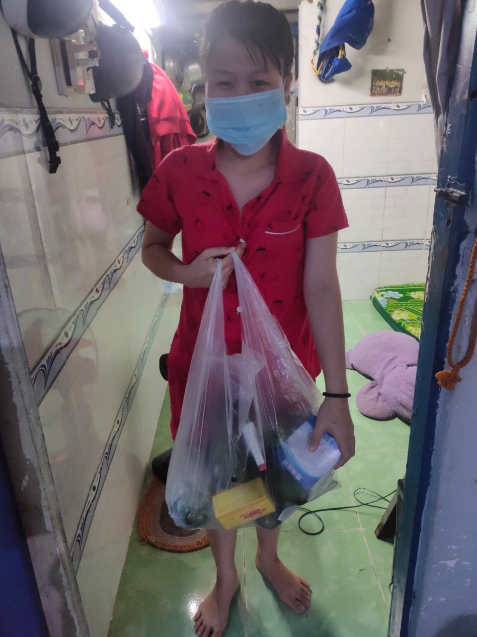 Chúng ta sẽ hỗ trợ rau củ và phần thuốc, khẩu trang, dung dịch sát khuẩn còn tồn nhé.