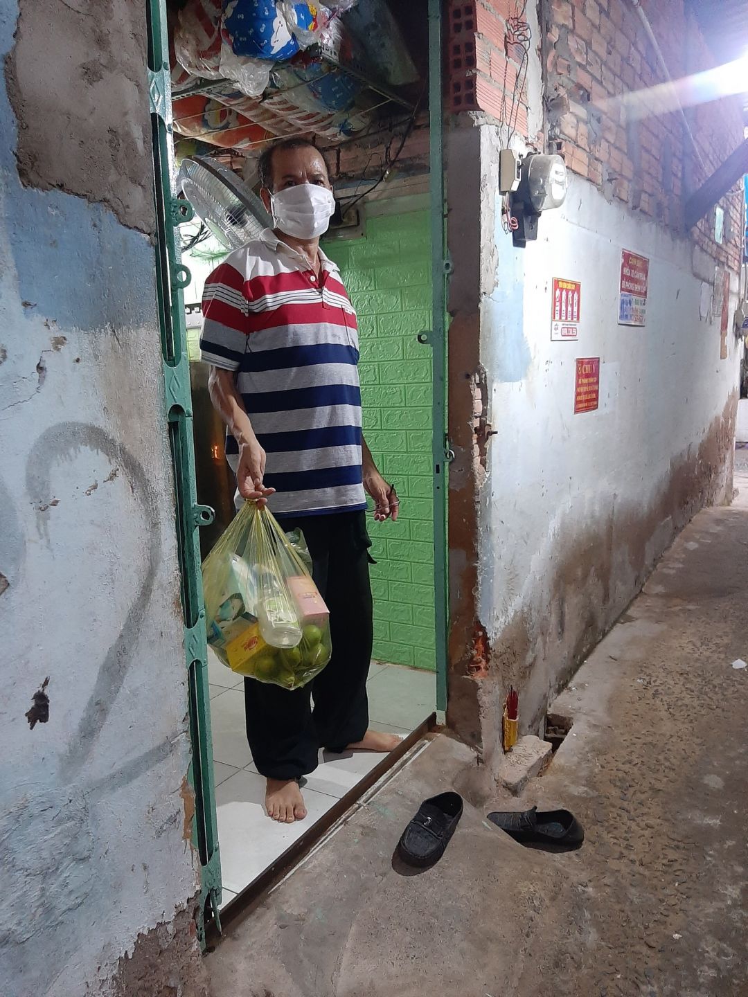 Hôm nay Anna xin được cập nhật các hình ảnh mà anh Khôi- công an khu vực khu phố 5 đã đi tặng thuốc sát khuẩn, khẩu trang, vitamin c cùng rau củ mạnh thường quân gửi tặng. Xin cảm ơn rất nhiều các mạnh thường quân và Người tôi Cưu mang làm cầu nối.