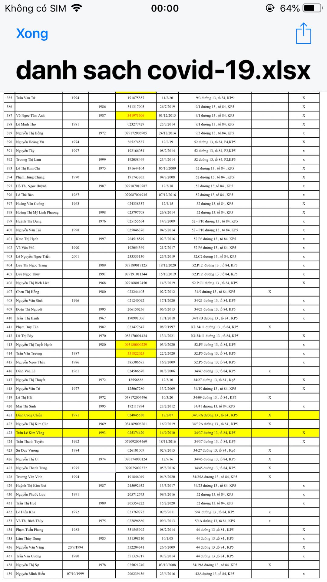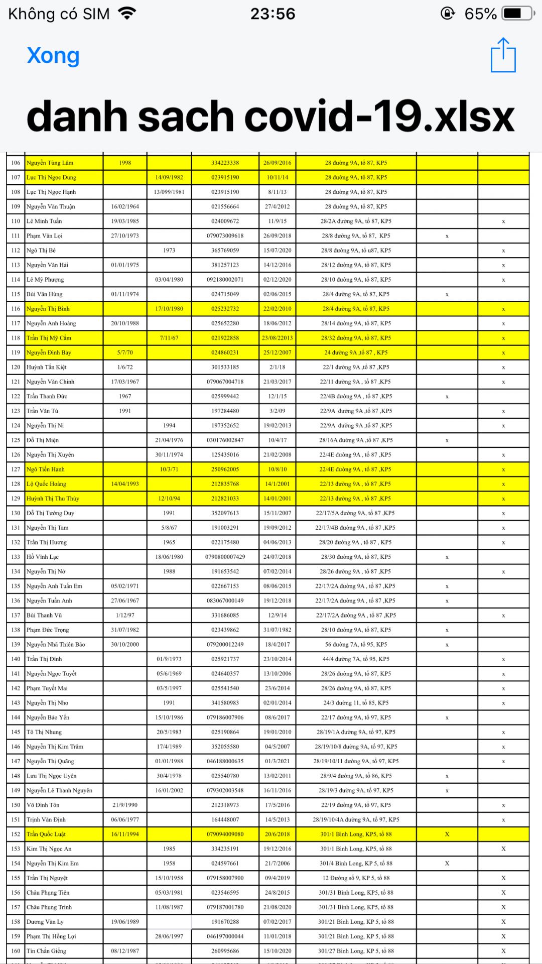 Anh Nguyễn Minh Phương, chủ tịch Mặt trận phường Phú Thọ Hòa, quận Tân Phú gởi danh sách 200 hộ khó khăn, hộ bị cách ly trên địa bàn phường đề xuất hỗ trợ khẩu trang, nước sát khuẩn, thuốc bổ giúp bà con hạn chế lây nhiễm, tăng cường đề kháng vượt qua dịch bệnh.