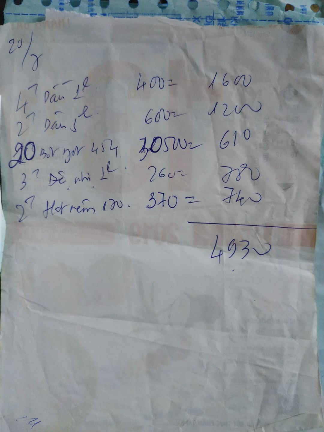 - Mua 2000 cái muỗng nhựa: 65đ/cái x 2000 cái = 130,000đ
