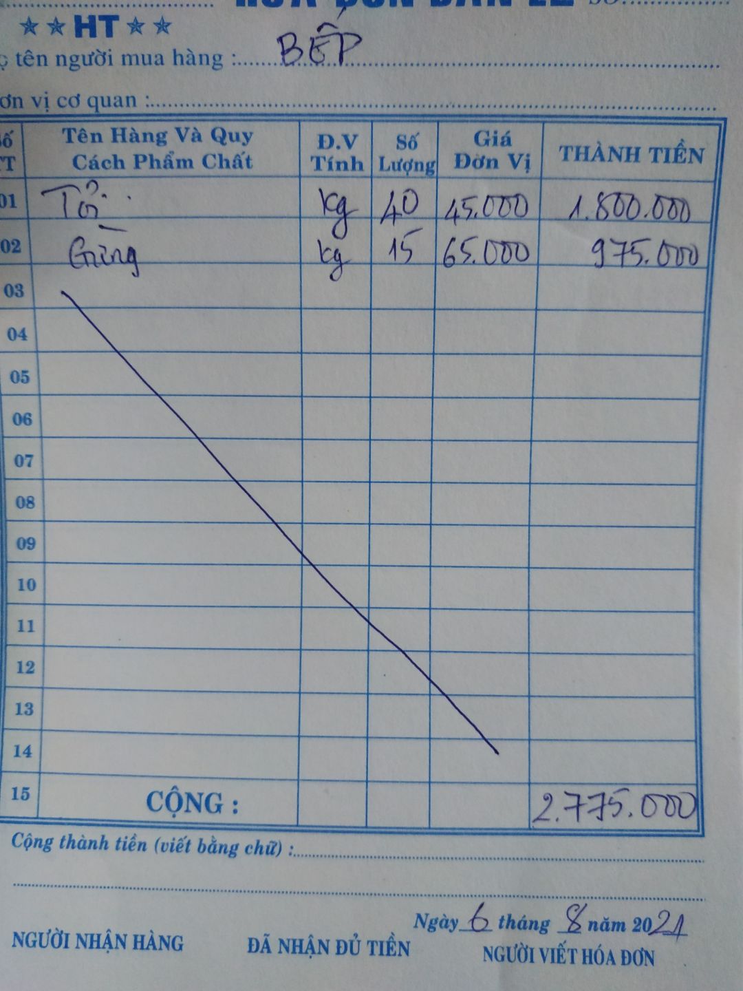 - Mua 36kg tỏi: 45,000đ/kg x 36kg = 1,620,000đ