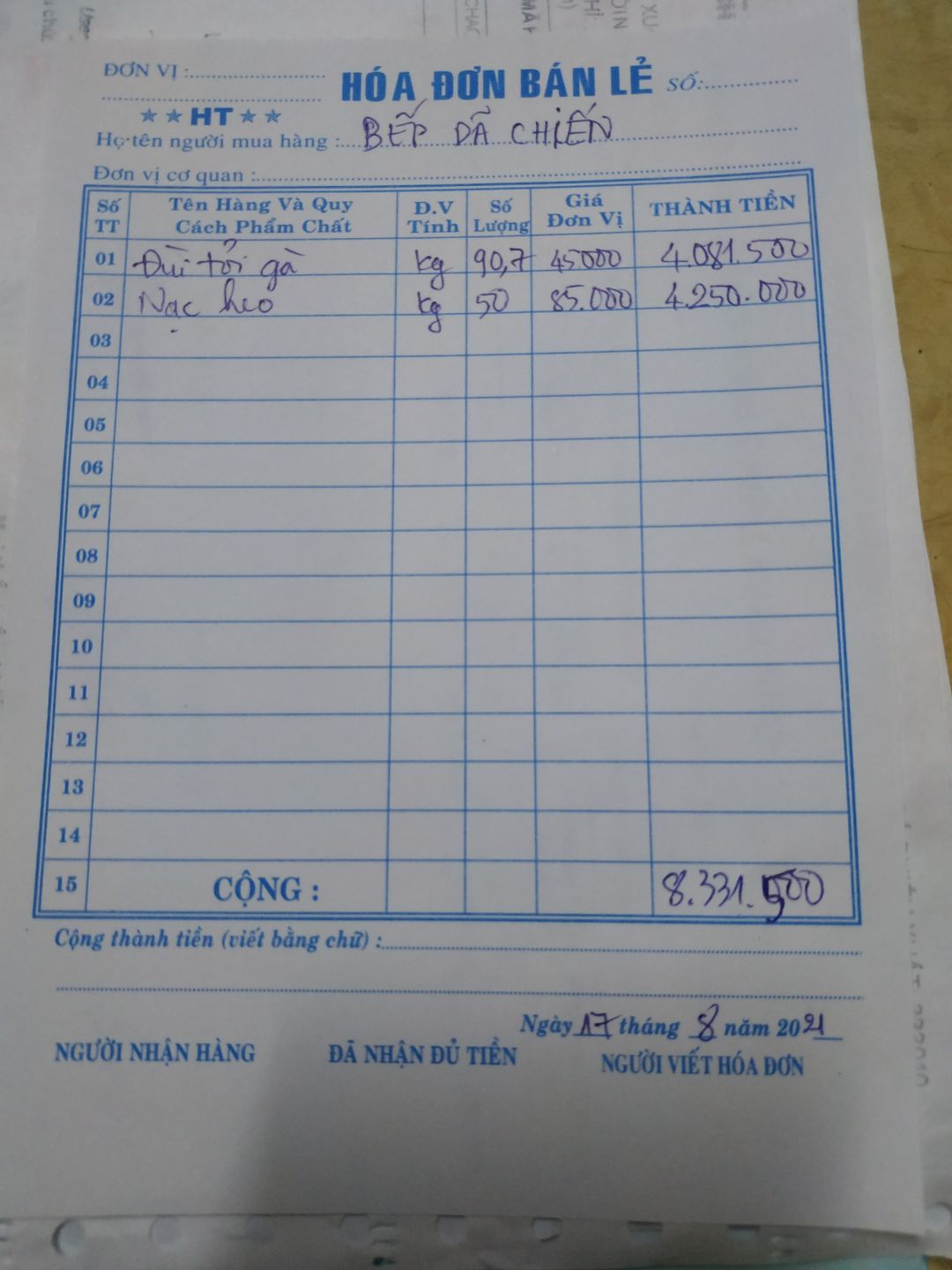 Loannguyen cập nhật chi phí ngày 08/08/2021: