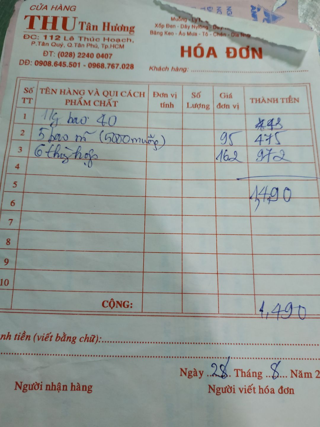 Loannguyen cập nhật chi phí ngày 26/08/2021:
