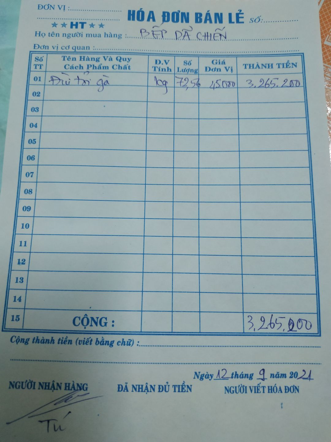 Gửi cả nhà chi phí ngày 19/09/2021: