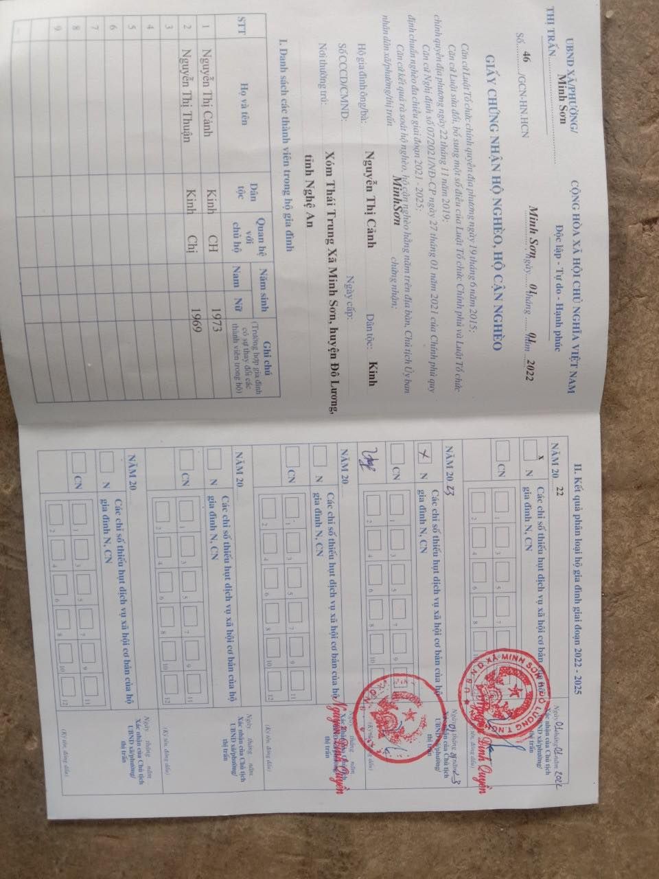 Hoàn cảnh gia đình con bà Thiêng tụi con đã xác minh, hoàn cảnh này tội ạ. Hai dì Nguyễn Thị Thuận và Nguyễn Thị Cảnh hiện đang sống tại xã Minh Sơn, huyện Đô Lương, tỉnh Nghệ An, cả hai đều bị tâm thần nhưng người chị là dì Thuận bị nặng hơn ạ, không còn biết gì nữa . Khi TV tới xác minh thì gặp dì Cảnh đang ngồi rửa hến để nấu cháo. Còn nhà thì khoá trái cửa lại nói khoá lại để khỏi chị chạy đi lung tung , khi mở cửa ra thì một mùi khai bốc lên nồng nặc, một người phụ nữ ngồi một góc nói lảm nhảm một mình , trên thân không có một mảnh vải che thân. Da bọc xương , gầy gò rất tội. Trước khi mẹ còn sống thì cũng có người chăm lo nên cũng không đến như thế này, chừ bà mất rồi còn người em nói tỉnh cũng không phải tỉnh mà dại cũng không phải dại, nhưng cũng không bình thường lắm . Lúc tụi con xin chụp giấy tờ sổ trợ cấp thì không cho chụp, giữ khư khư nói đưa các cô chụp tui lấy sổ mô mà nhận tiền. Nói chụp để xin quà cho cũng nhất nhất không có đưa cho ai , thâm tâm dì cũng biết đó là nguồn sống duy nhất của hai chị em nên lúc trước được dặn giấu cẩn thận nên đố ai mà mượn được . Phỉnh mãi không được nên tụi con cũng đành bó tay, nhưng qua hỏi thăm bà con trong xã thì được biết hai dì có được một khoản trợ cấp là 1.260.000 nghìn đồng, của dì chị là 720.000đ , dì em là 540.000đ . Số tiền này hàng tháng phải mua thuốc an thần hơn 500.000đ và số tiền còn lại là khoảng hơn 700.000đ hai chị em nuôi nhau. Sống nhờ khoản tiền đó và thỉnh thoảng có sự giúp đỡ của bà con. Tính ra với tầm 700k một tháng , mỗi ngày hơn 20.000 cho hai người ngày ba bữa thì cũng may ở quê còn có bà con láng giềng , người cho bó rau người cho quả trứng. Tính ra một dở ăn có khoảng 6-7.000 cho 2 người sáng, trưa, tối cũng đủ biết đói no thế nào . Mà cũng không cần tính nhìn dì chị với da bọc xương đó cũng hiểu là cuộc sống hai chị em thế nào rồi , hoàn cảnh hai dì còn có một người em trai gần đó, làm nghề cửu vạn. Là người em cùng cha khác mẹ với hai dì, chú này tỉnh táo hơn chút có vợ con nhưng gia cảnh cũng không khá giả hơn là bao. Cũng có được căn nhà nhưng cũng chẳng có gì giá trị, ngoài ra chú cũng còn một bà mẹ bị mù tức là mẹ kế của hai dì . Trước bà cũng ở bên nhà bên này nhưng do tối ngủ không được , cùng với việc dì Thuận bị bệnh vậy nên chừ bà về ở bên nhà con trai. Mấy giấy tờ tụi con chụp được là nhờ bà mẹ kế cất dùm nên mới chụp được , riêng sổ nhận trợ cấp thì dì Cảnh giữ nên có nói cách nào cũng không cho mượn chụp. Làm việc với người tỉnh đôi khi còn khó nên làm việc với người dại nửa tỉnh nửa khôn còn khó gấp bội lần. Lúc mở cửa vào nhà một người điên cũng sợ lắm, nhiều người còn la hét đánh đập người, may sao dì Thuận lúc này cũng không có dữ lắm chỉ ngồi một góc nói lảm nhảm, tội ạ.