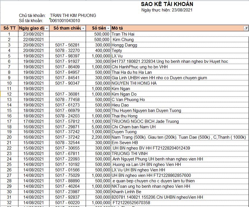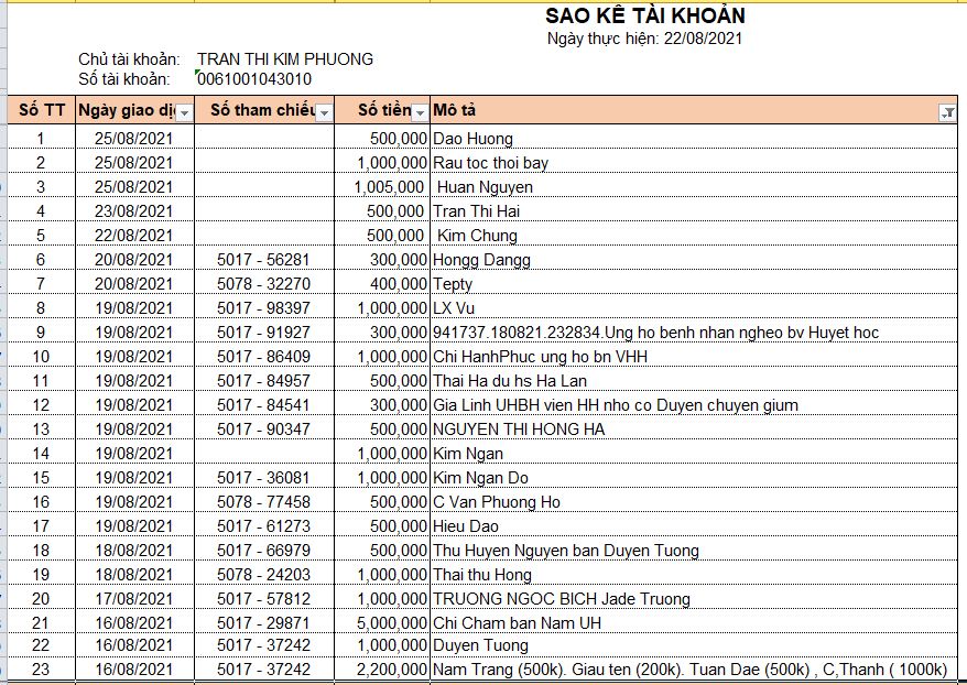 NHờ Thỏ cập nhập cho chị sao kê NH tính đến hôm nay với để chị còn update, tks,,,