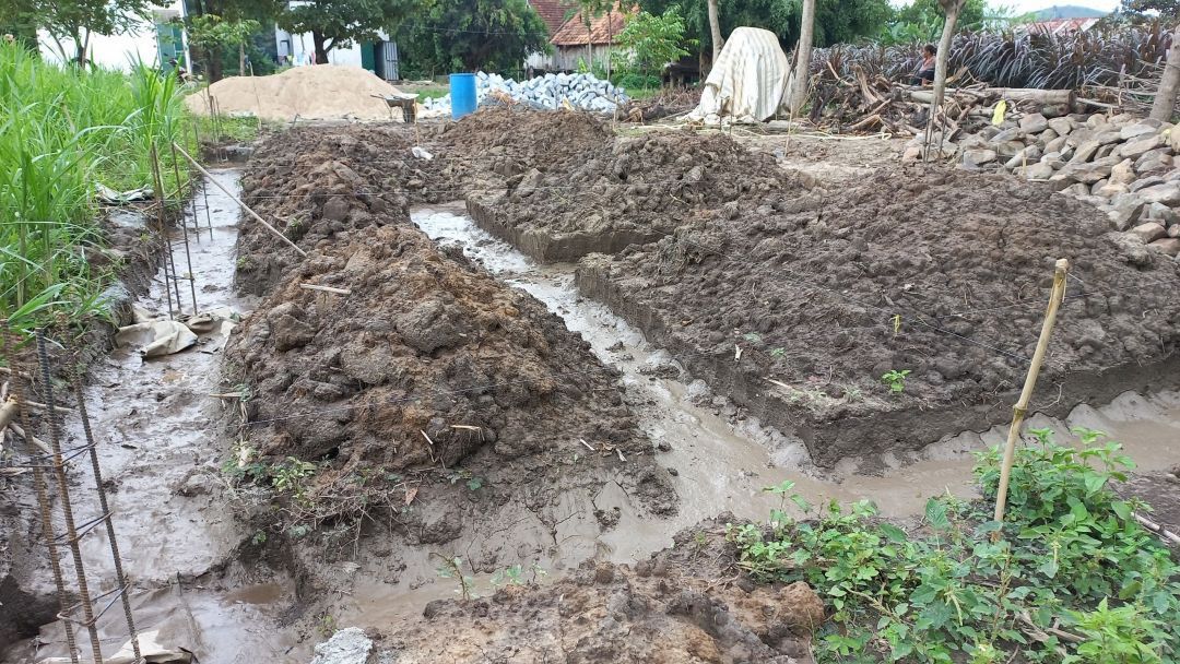 Hai tuần rồi Cư Pui dính mưa nhiều do ảnh hưởng bão nên tốp thợ mới làm xong được phần móng. Nhìn rất chắc chắn và đẹp phải không cả nhà!