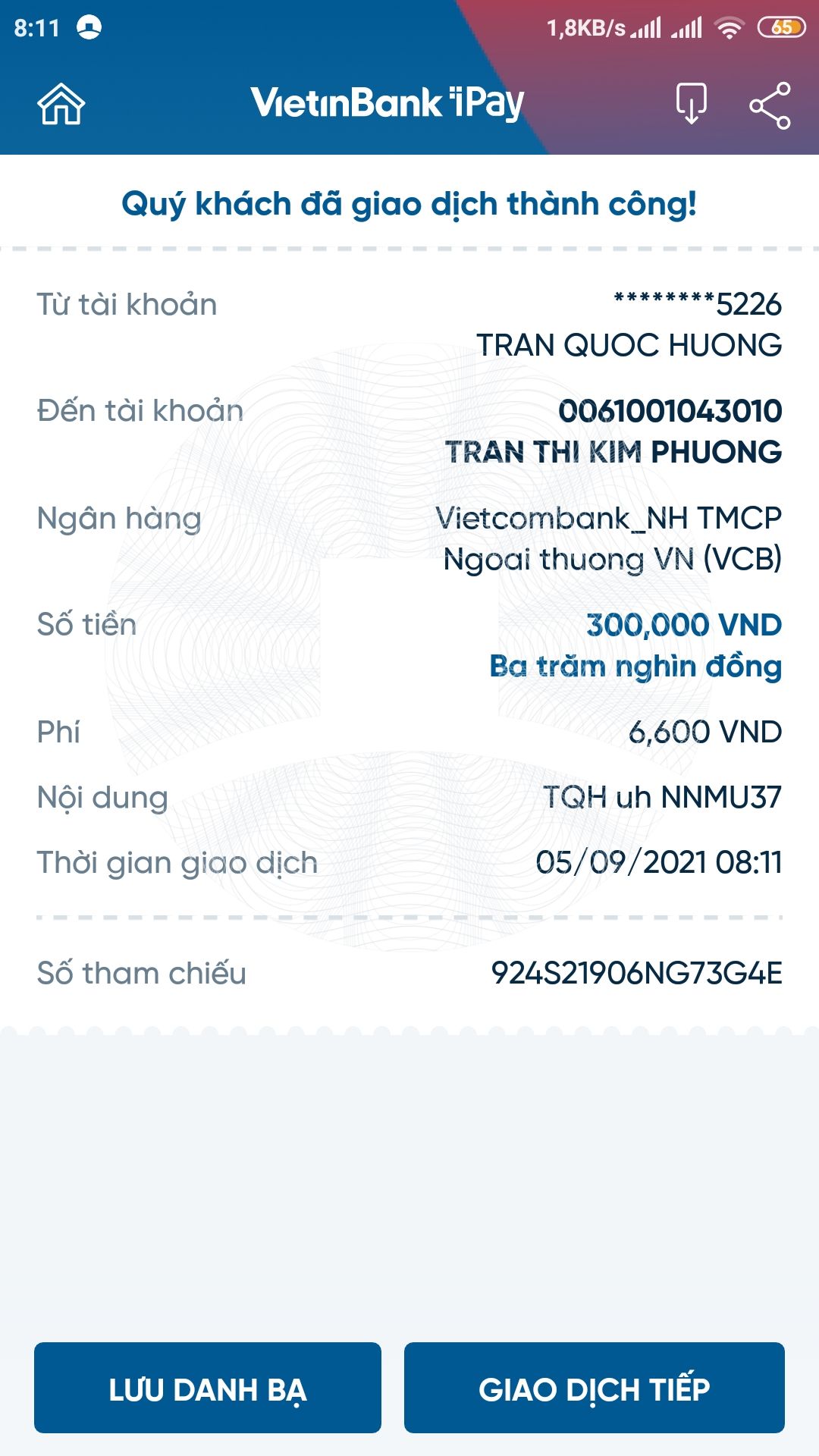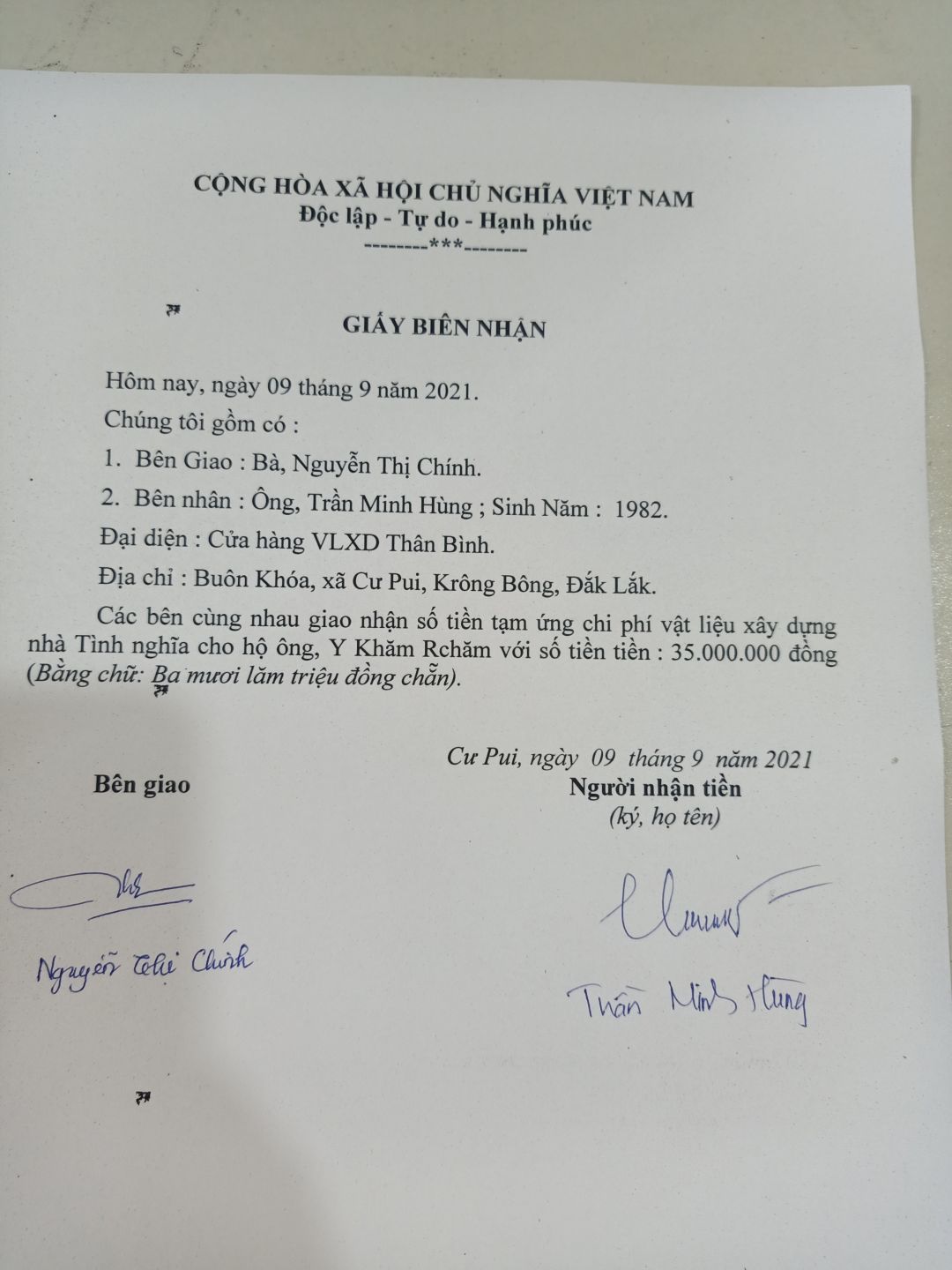 @Thocon : Em xuất quỹ chuyển tới bạn Chinh Ha 35,000,000đ tạm ứng lần 1 cho việc xây dựng NNMU số 37 tại Cư Pui dùm nhé.