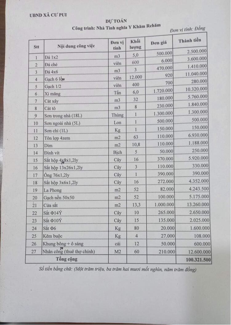 Với đầy đủ bản thiết kế, dự toán, cam kết đóng góp từ phía chính quyền 30% tương đương 30 triệu VND cũng như phần quyên góp từ NTCM (trên 80 triệu), BQT đủ căn cứ để chúng ta triển khai NNMU37 cho gia đình chú Y Khăm như dự kiến.