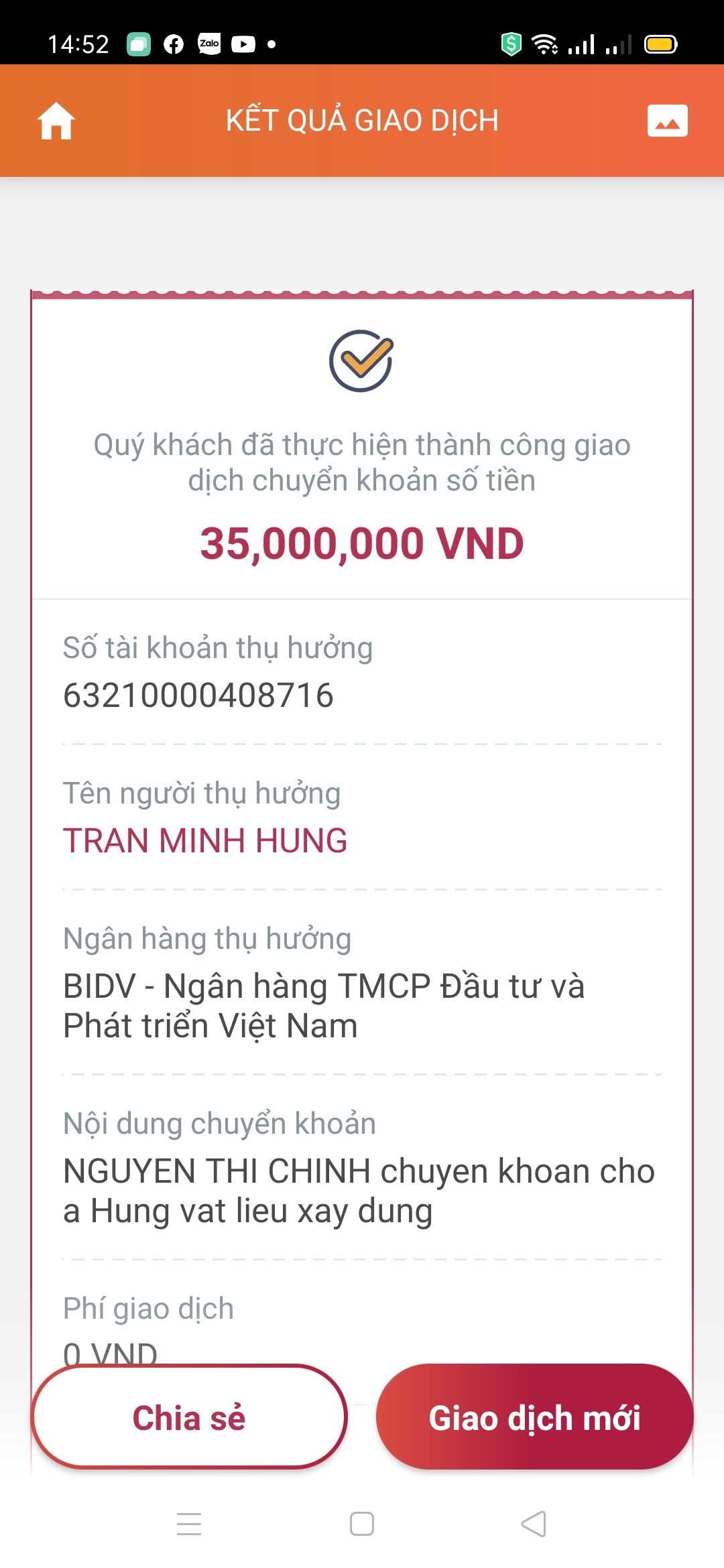 E đã nhận được tiền vào tk rồi ạ. E sẽ chuyển đủ cho bên cấp vật liệu và thi công ạ.