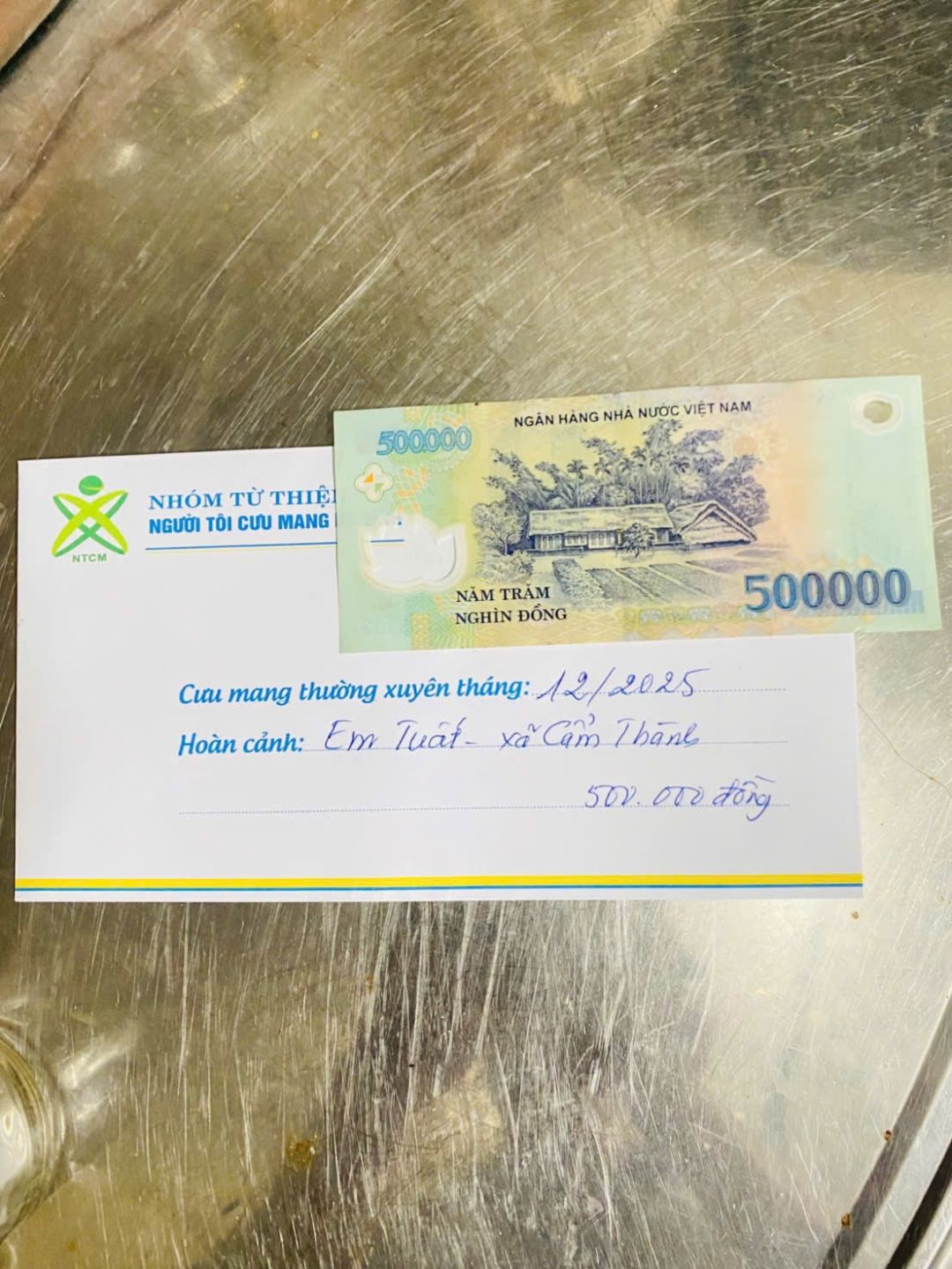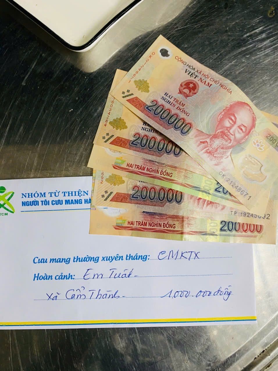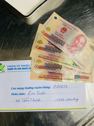 Chào cả nhà !Chúng ta còn sót khoản tiền CMKTX của bác @kimbang từ năm 2022 tới giờ chưa trao... trong khi hàng tháng vẫn có thành viên ghé thăm và trao tiền CMTX. Rất xin lỗi vì việc bỏ sót này.@trangvitgioi : Em xuất chuyển 1,000,000₫ của bác @kimbang tới mẹ con chị Tuất dùm nhé.Xin cảm ơn sự quan tâm của cả nhà Thân mến.