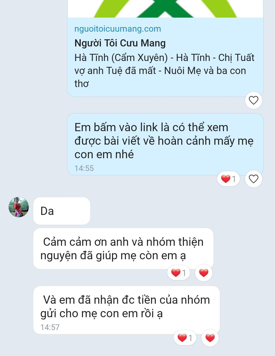 Dạ em đã nhận được 200,000đ tháng 8/2024  Michele du ,rồi ạ. Em cảm ơn mạnh thường  quân va diễn đàn người tôi cưu mang và GĐ Michele du  đã luôn giúp đỡ mẹ con em nhiều ạ.