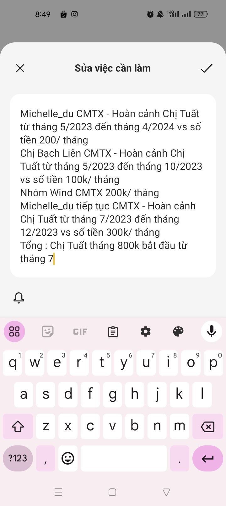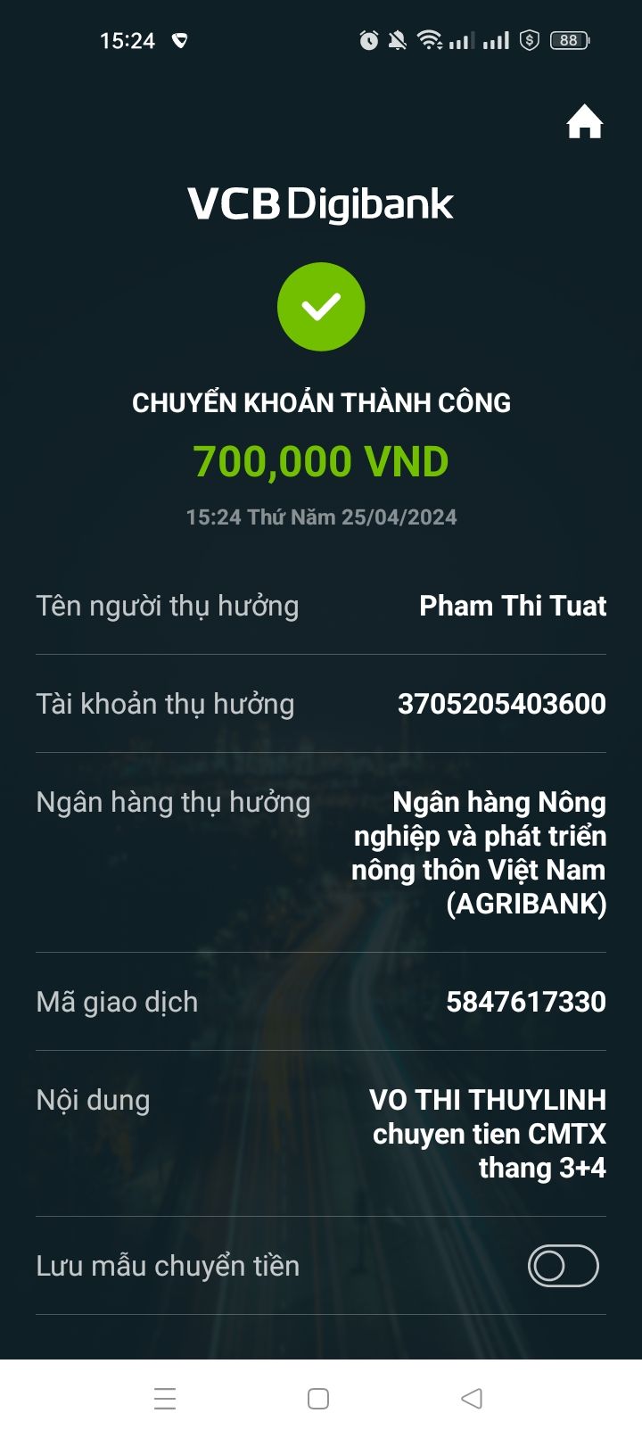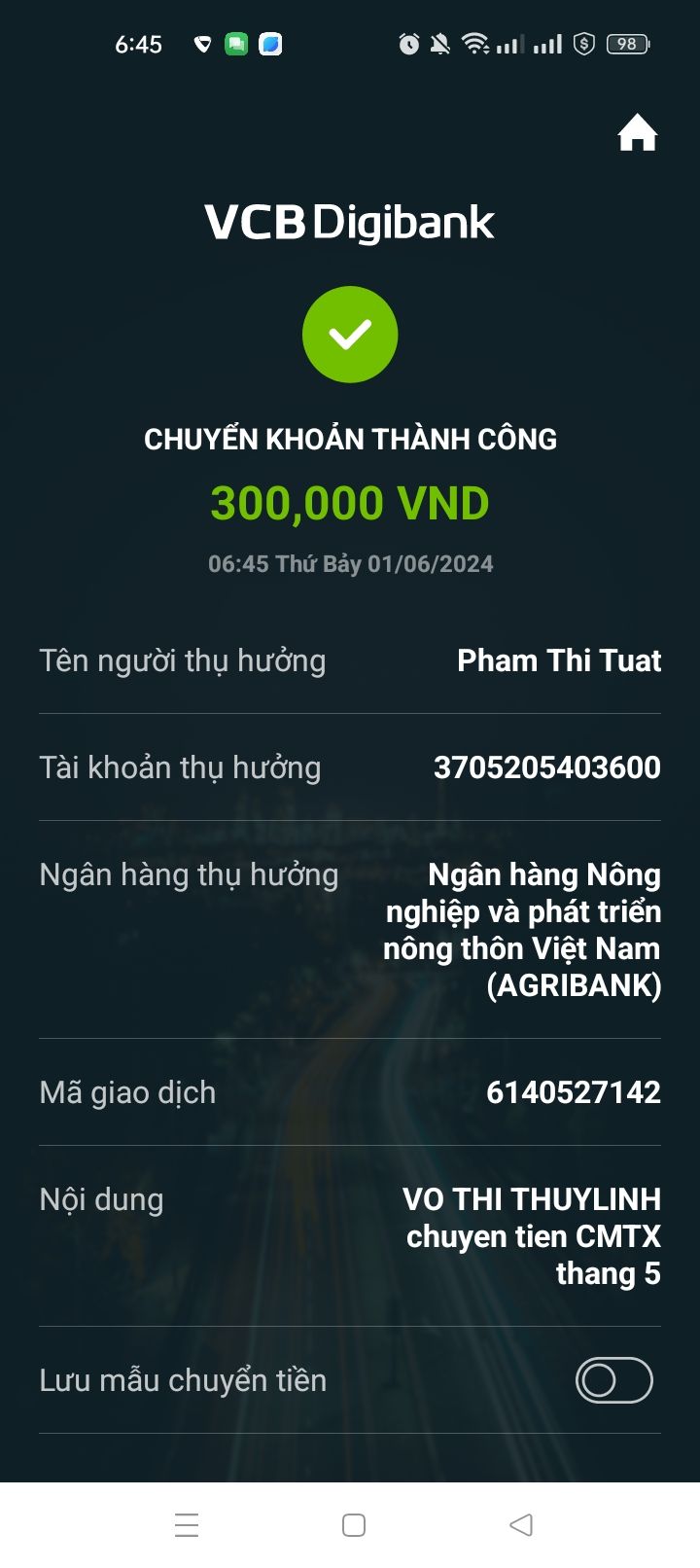 @Thuỳ Linh Võ: Cháu gái có sự nhầm lẫn rồi vì Michel_du và Gia đình đã chuyển tiền CMTX 200,000₫/tháng đến hết tháng 4/2024 (12 tháng từ tháng 5/2023).