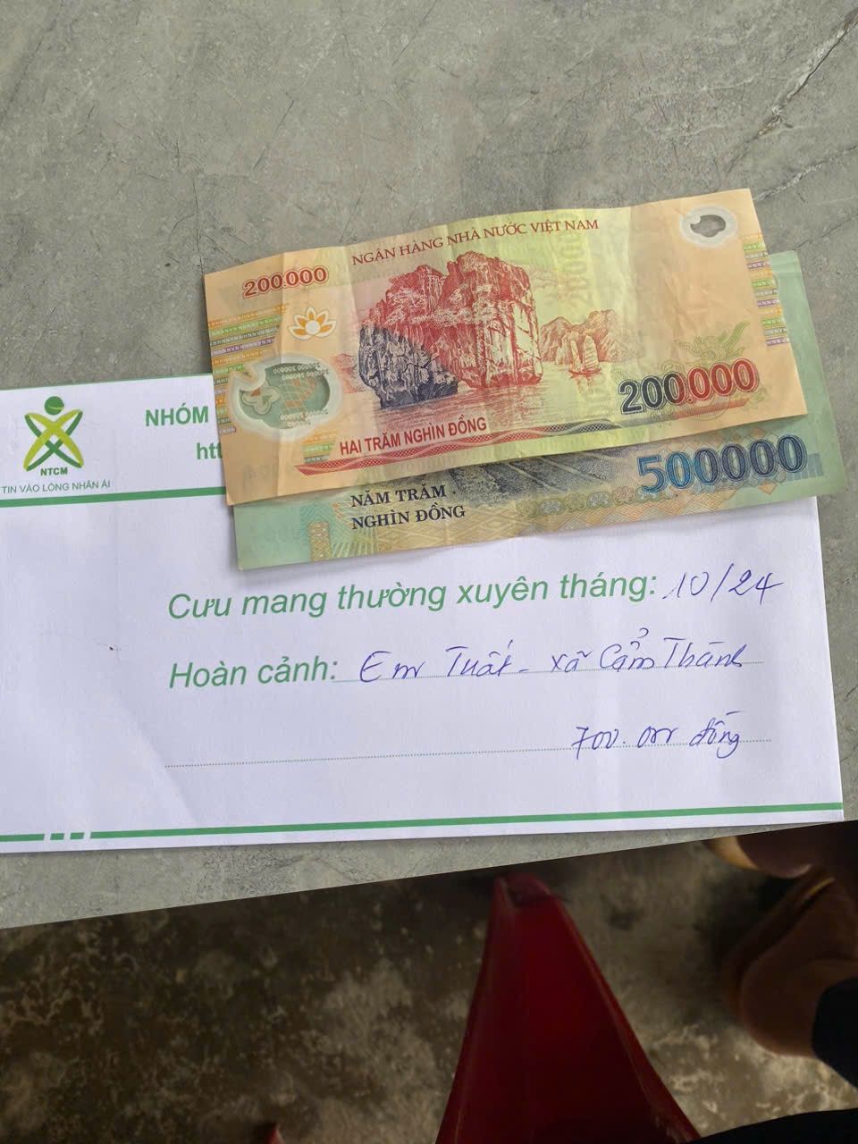 Hoàn cảnh em Tuất tháng 12 bác @michele_du đã ủng hộ 200.000₫. Còn thiếu 500.000₫ LNLB đề xuất xuất quỹ NTCM hỗ trợ ạ.