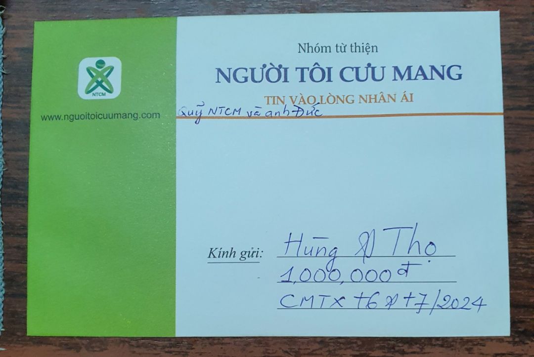 Cảm ơn anh Đức đã chung tay CMTX 2 cháu Hùng và Thọ !