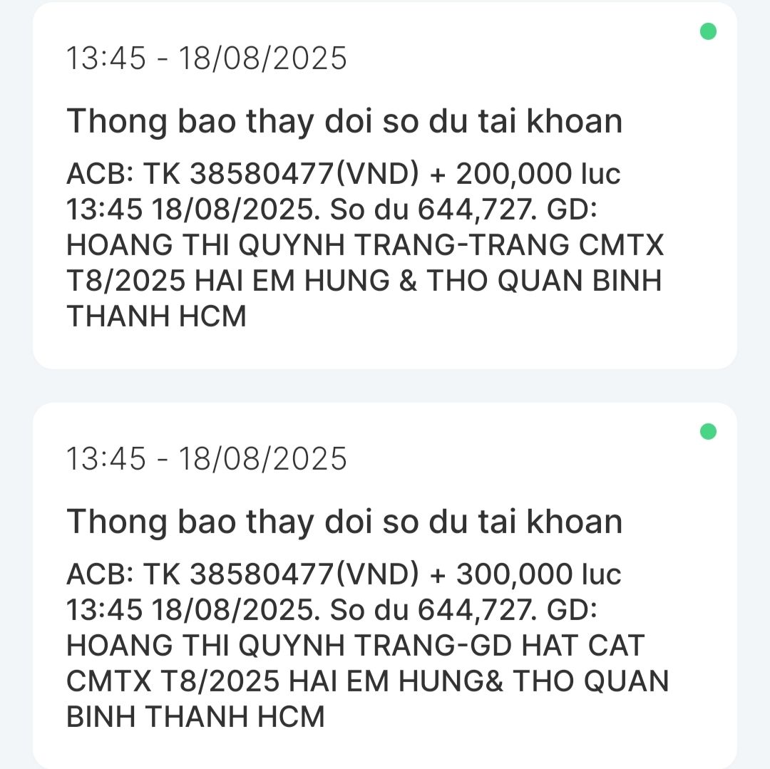 Con tên là Nguyễn Hữu Thọ, con đã nhận được CMTX tháng 1/2025, con xin cảm ơn chú Đức ,GD HATCAT, cô Trang, nhóm cô Thảo và quán cơm 2.000 đồng đã hỗ trợ cho con và em con ạ.