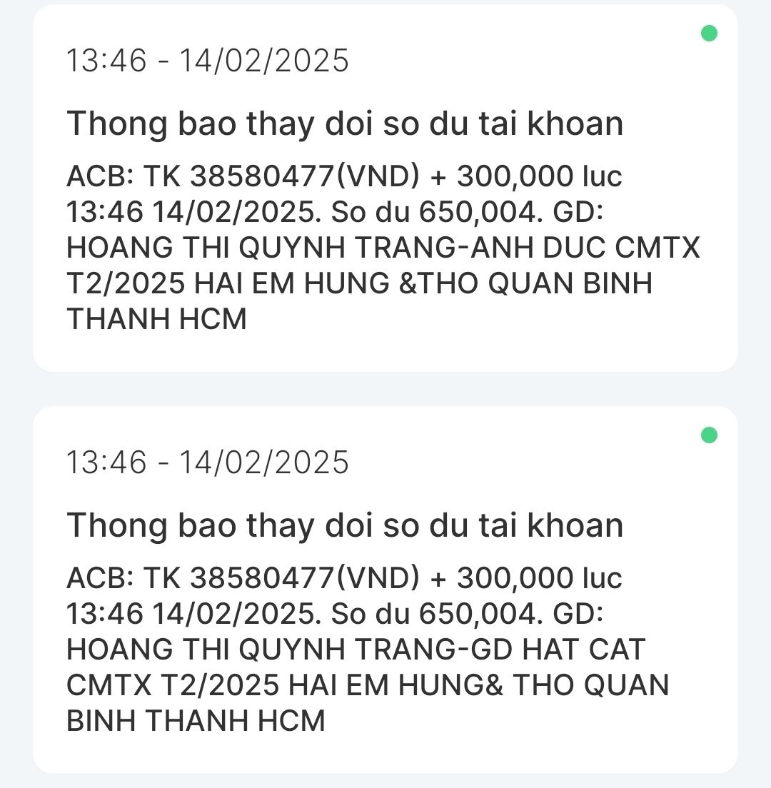 Con tên là Nguyễn Hữu Thọ, con đã nhận được CMTX tháng 1/2025, con xin cảm ơn chú Đức ,GD HATCAT, cô Trang, nhóm cô Thảo và quán cơm 2.000 đồng đã hỗ trợ cho con và em con ạ.