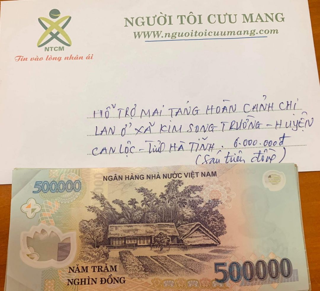 @ Thocon : Em chuyển tới Vânkiêusa 6,000,000đ tiền các bạn giúp đỡ đám tang của chị Lan dùm nhé ( trong đó có 612,000đ xuất quỹ NTCM )