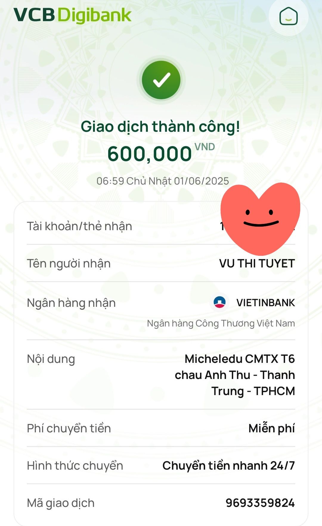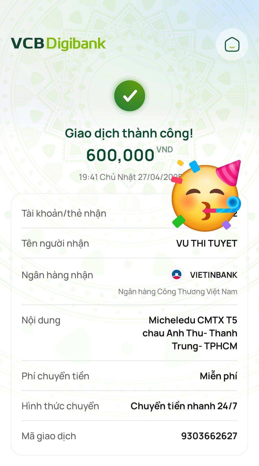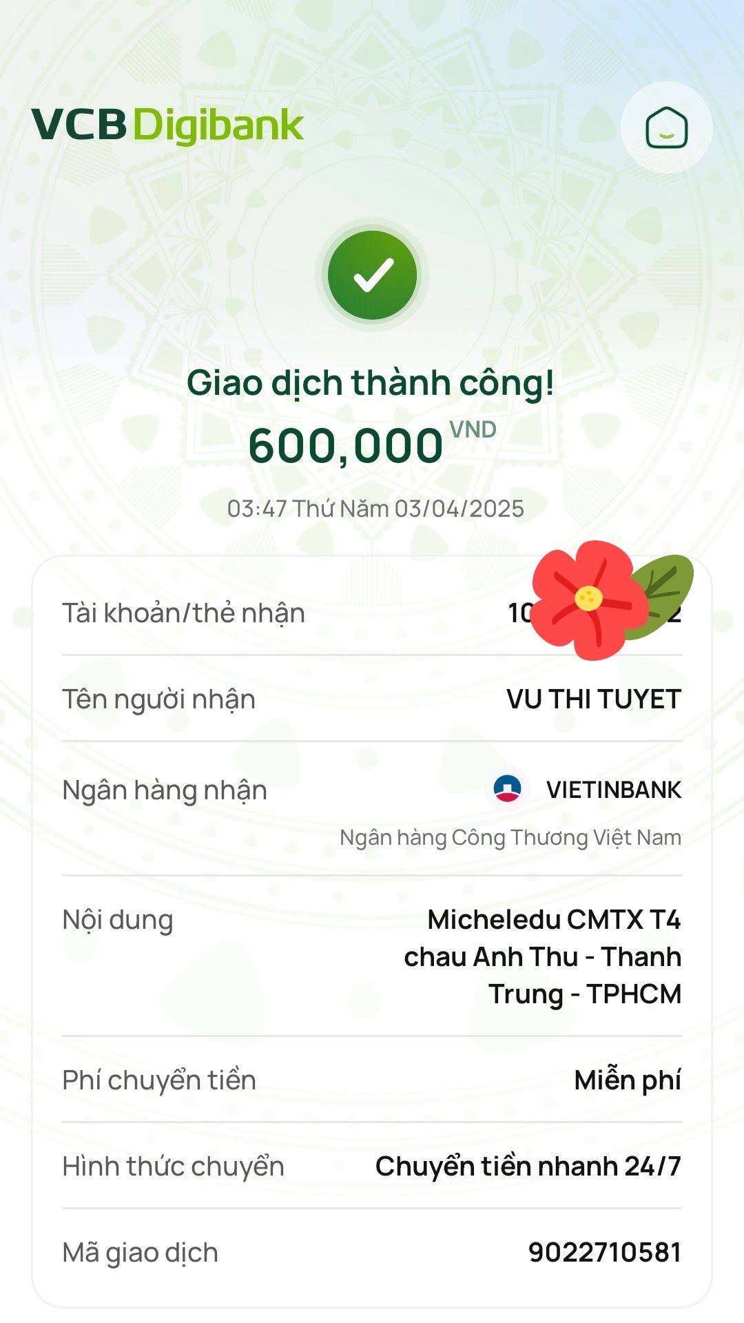 Lathuvang đã trung chuyển CMTX T02/25 đến cháu Anh Thư- Thành Trung của cô Michele_du và GĐ.