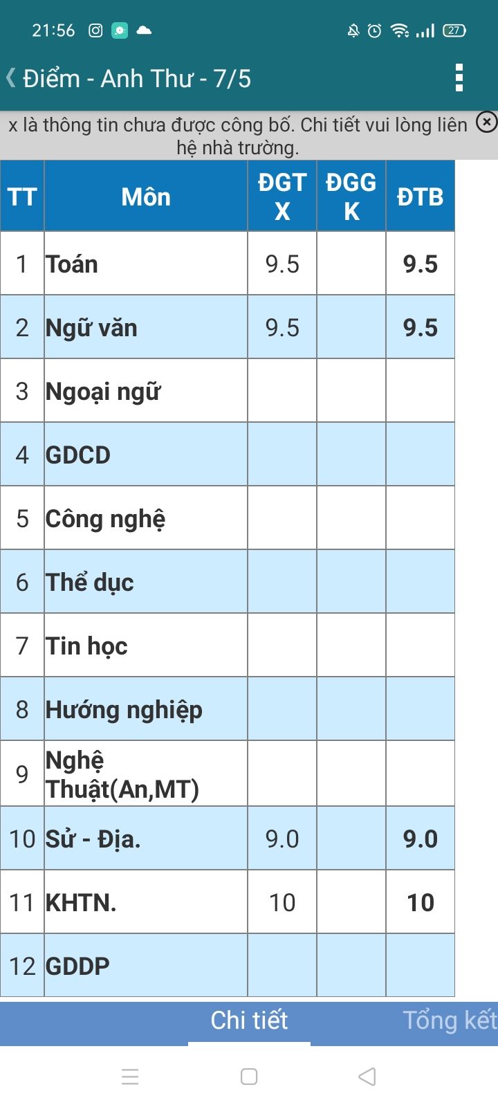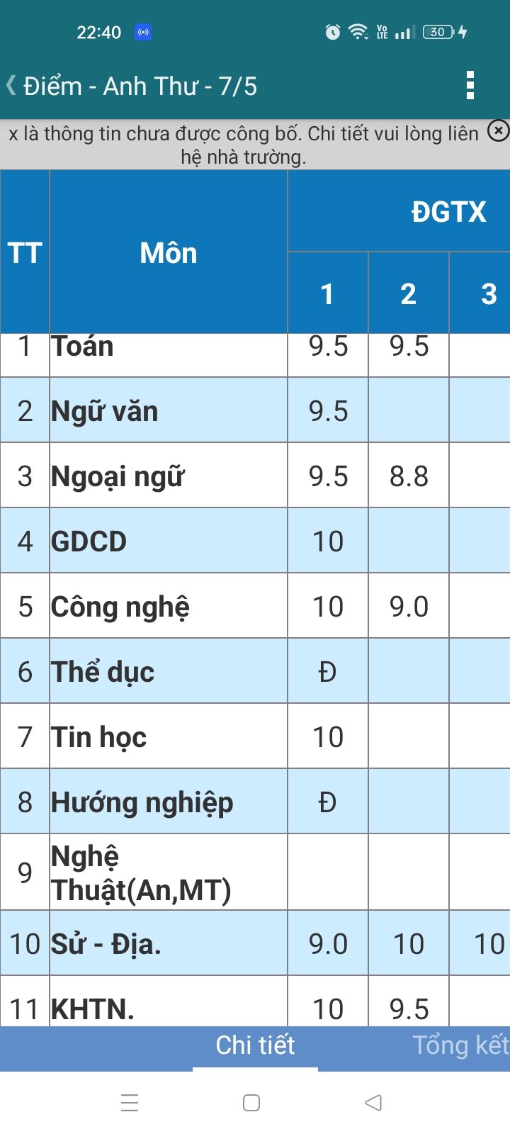 Đầu năm học tới giờ con cũng được ít môn có điểm rồi con gửi lên cho cả nhà mình cùng xem ạ.