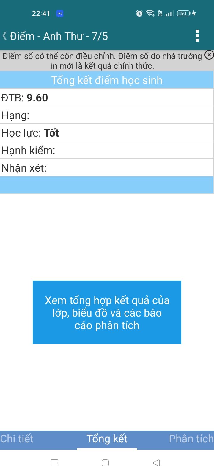 Kết quả học tập của học kì 2 của con con xin gửi cho các cô chú xem