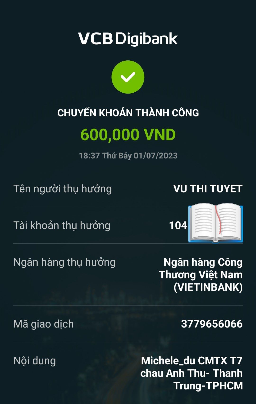 Hôm nay 1/7 chị em con đã nhận được 600k từ Michele_du .