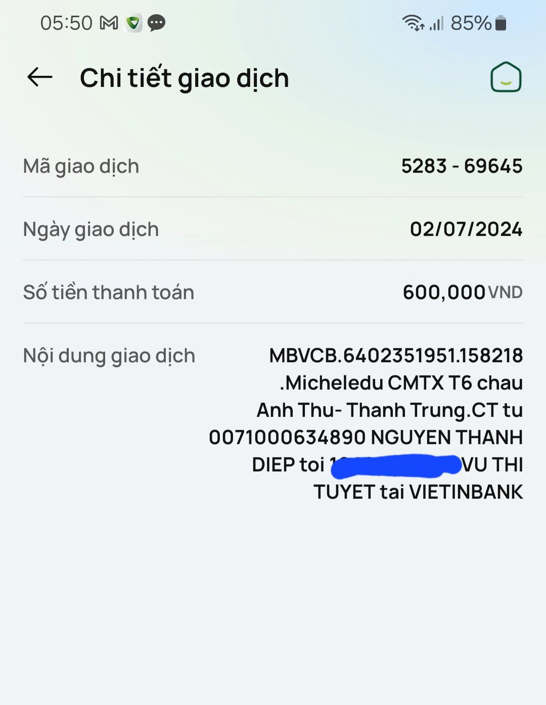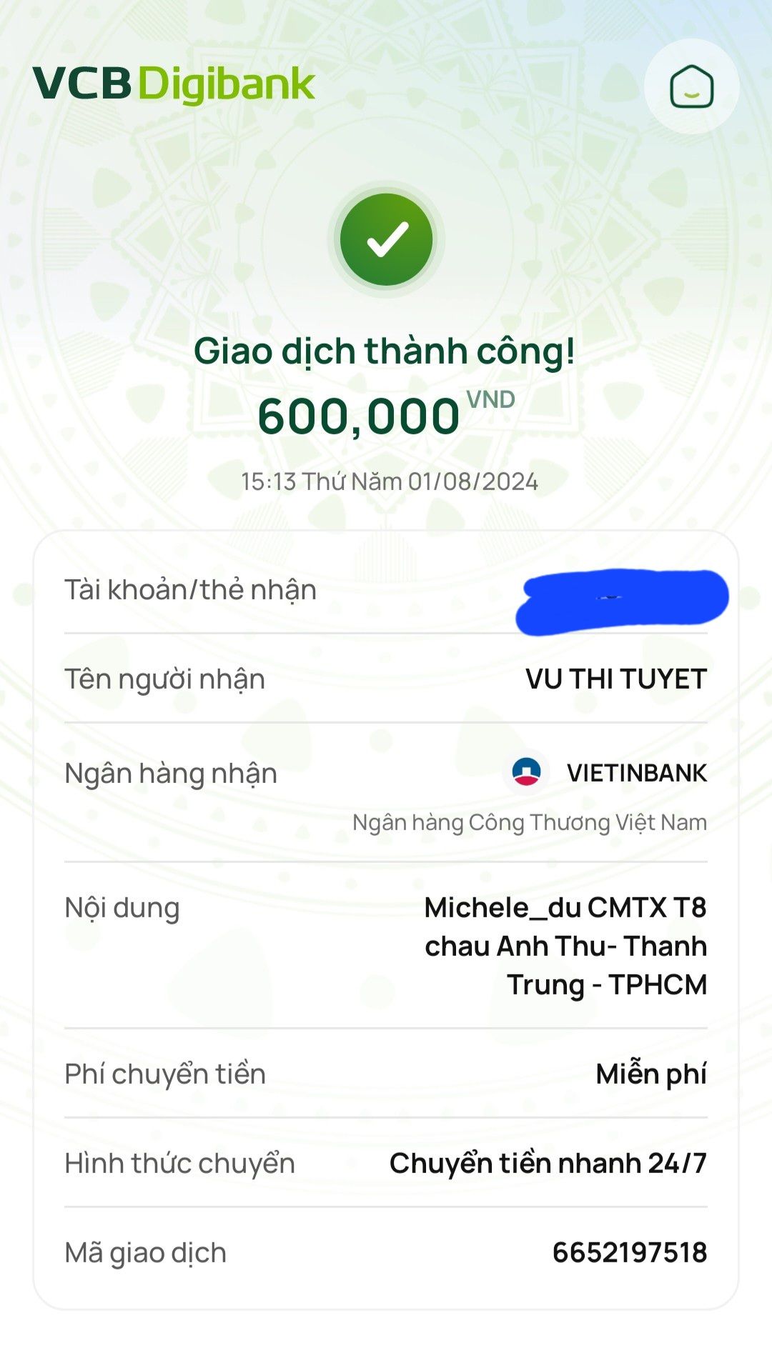 Lathuvang đã chuyển CMTX T3/24 của chị Michele_du và GĐ đến cháu Anh Thư- Thành Trung.
