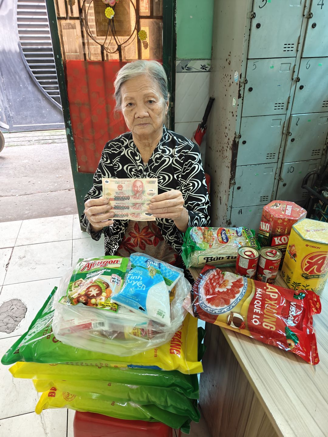 Cháu cập nhật hôm nay 4/2/2026 bà của Anh Thư đã nhận được nhu yếu phẩm của tháng 1/2026 rồi ạ!