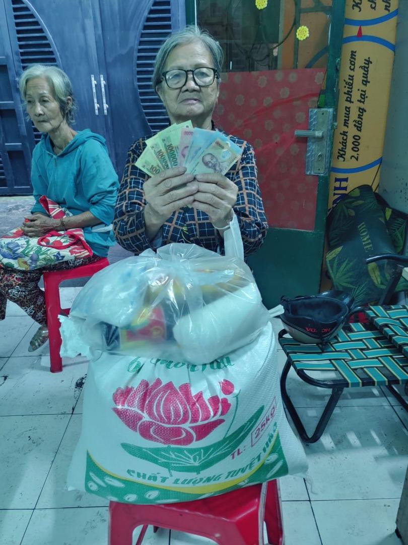 Letuantu cập nhật hình ảnh trao nhu yếu phẩm kèm 500,000đ CMTX T1 và 300,000 CMTX từ trích quỹ của T12 năm trước. Tổng là 800,000đ.