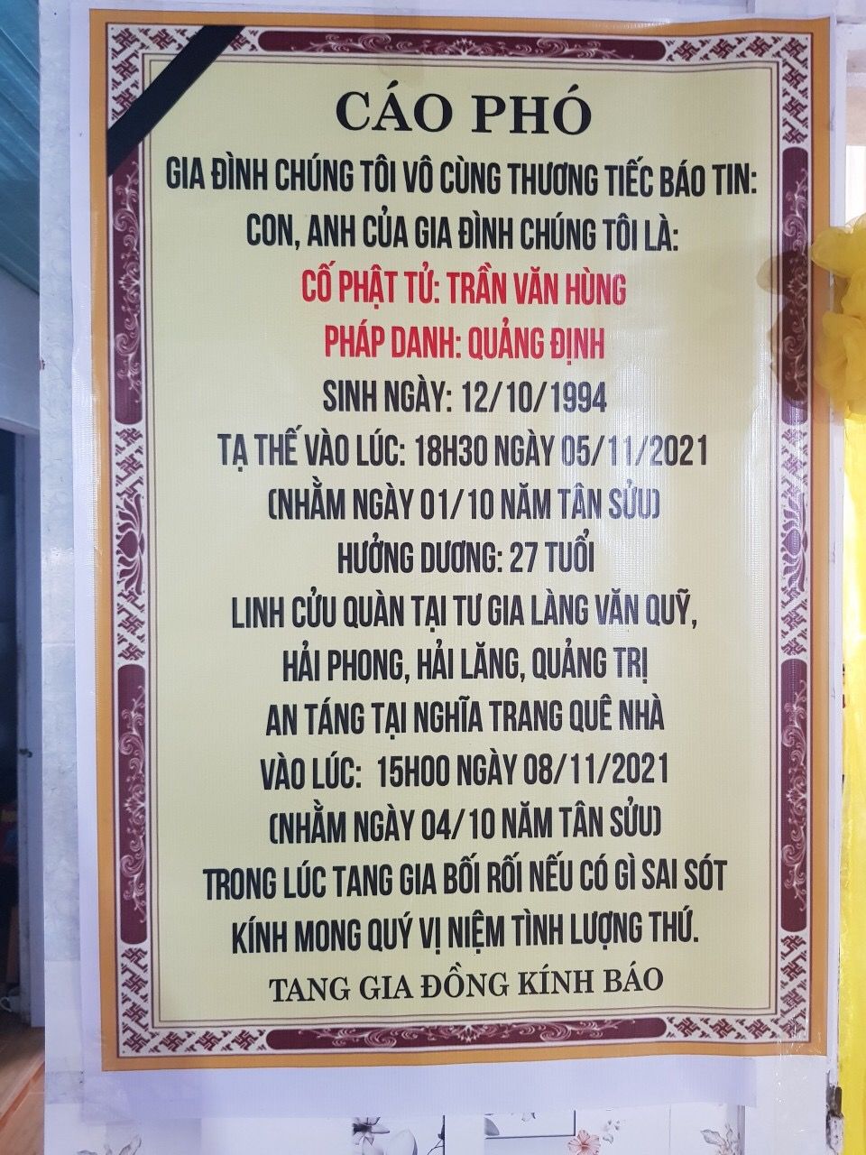 Hôm qua được tin thành viên @Trần Hùng đã mất trong bệnh viện do bị tràn dịch phổi. Sáng sớm hôm nay, gia đình đã làm thủ tục để đưa em về quê an táng.