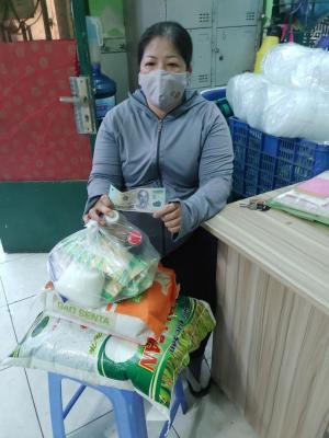 Hôm nay, chị Dung đã đến quán cơm để nhận gạo, nhu yếu phẩm và 500,000đ CMTX T12 từ Michele_du và gia đình hỗ trợ.