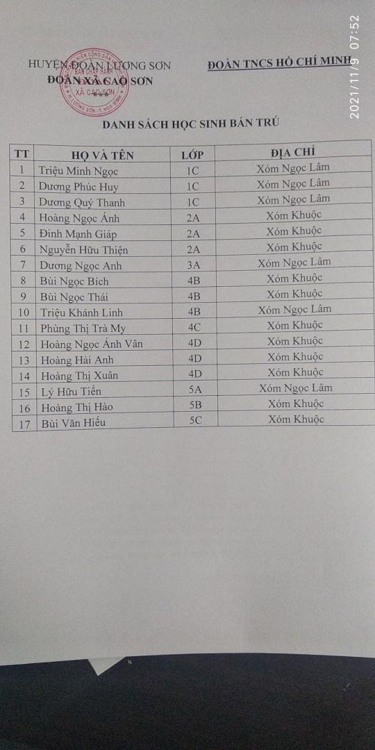 Danh sách gồm 17 em học sinh, cùng số lượng đồ dùng kèm theo trong ảnh ạ.