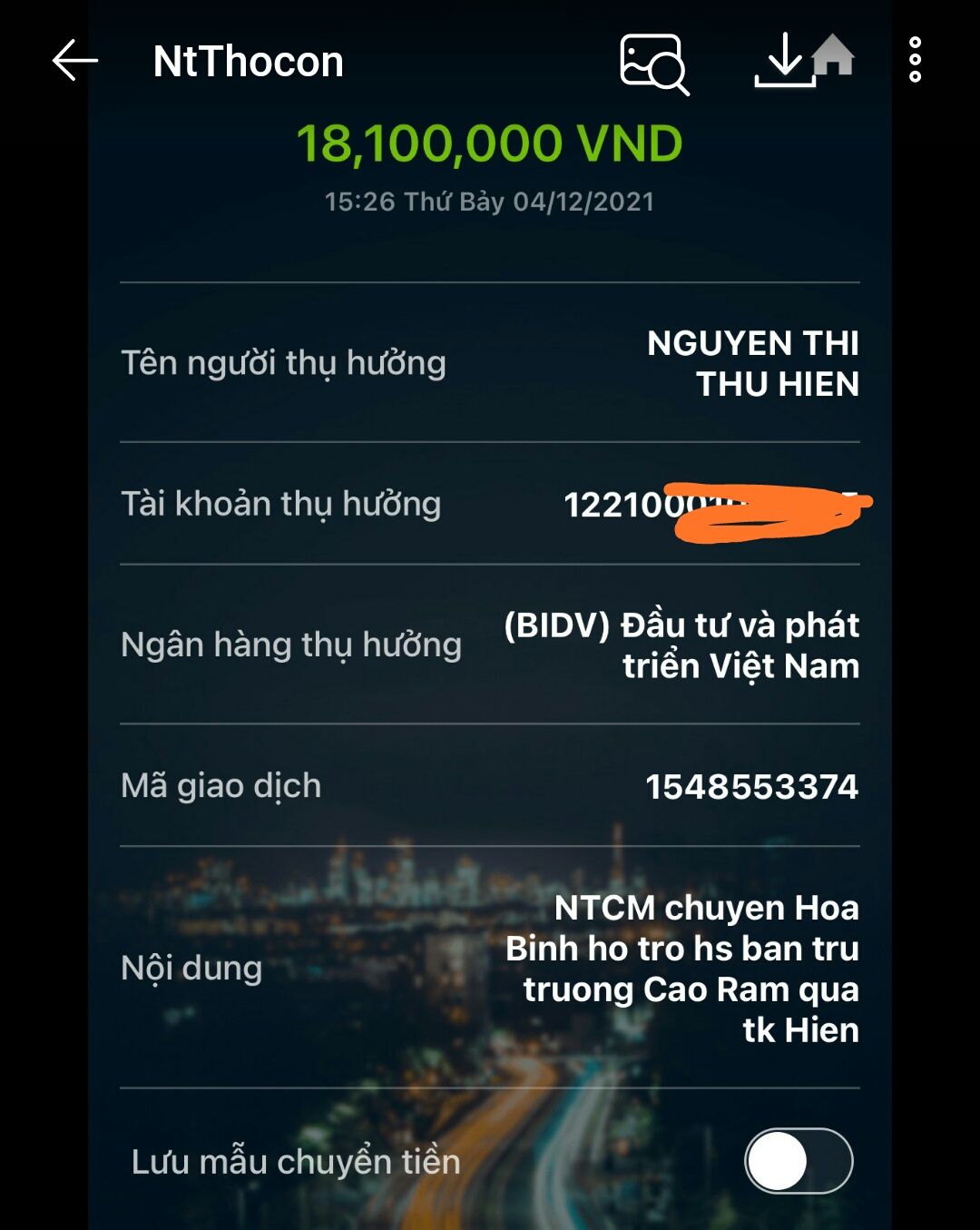@Thocon : Em chuyển 18,100,000₫ tới Hiền Linh dùm nhé.