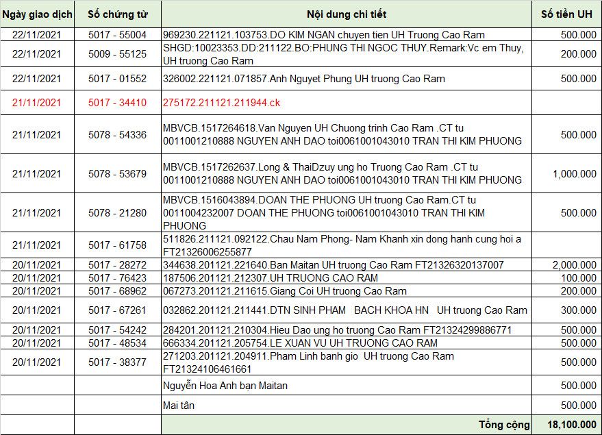 Thời gian, địa điểm nhận ủng hộ: bắt đầu từ ngày 10/11/2021, địa điểm tiếp nhận tại phòng Đoàn thanh niên xã, hoặc khu ký túc của học sinh trường TH&THCS Cao Răm