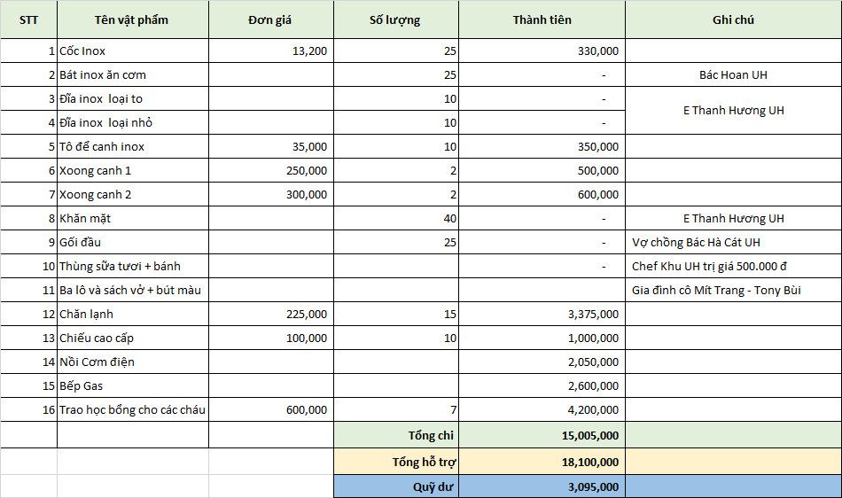 Danh sách gồm 17 em học sinh, cùng số lượng đồ dùng kèm theo trong ảnh ạ.