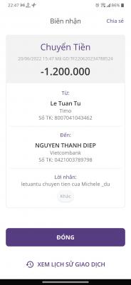 Nhờ Letuantu chuyển 1,200,000₫ của Michele_du lại cho Lathuvang để chúng ta giúp đỡ cho hoàn cảnh khó khăn hậu Covid19 khác nhé.