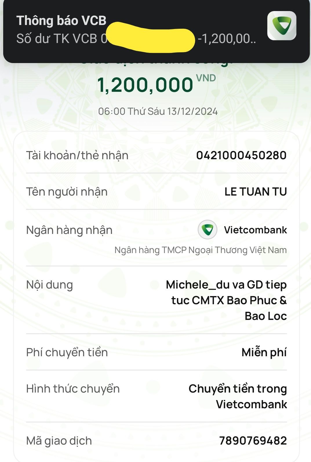 Con đã nhận được tiền tháng 12 từ Anh Letuantu là 600.000