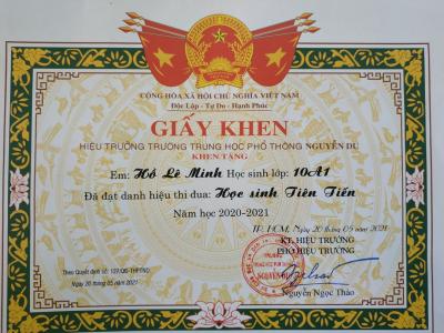 Em Minh đang học lớp 11 trường THCS Nguyễn Du ( Cư xá Bắc Hải), thành tích tập tập đạt loại khá.