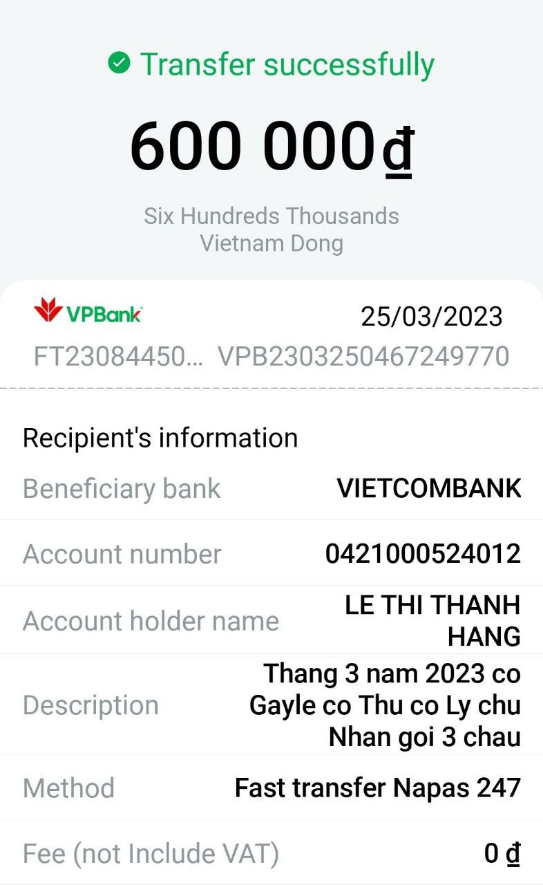 Nhóm bạn chị Ly là MTQ đang CMTX các cháu tiếp tục hỗ trợ 600,000đ mỗi tháng trong vòng một năm nữa.