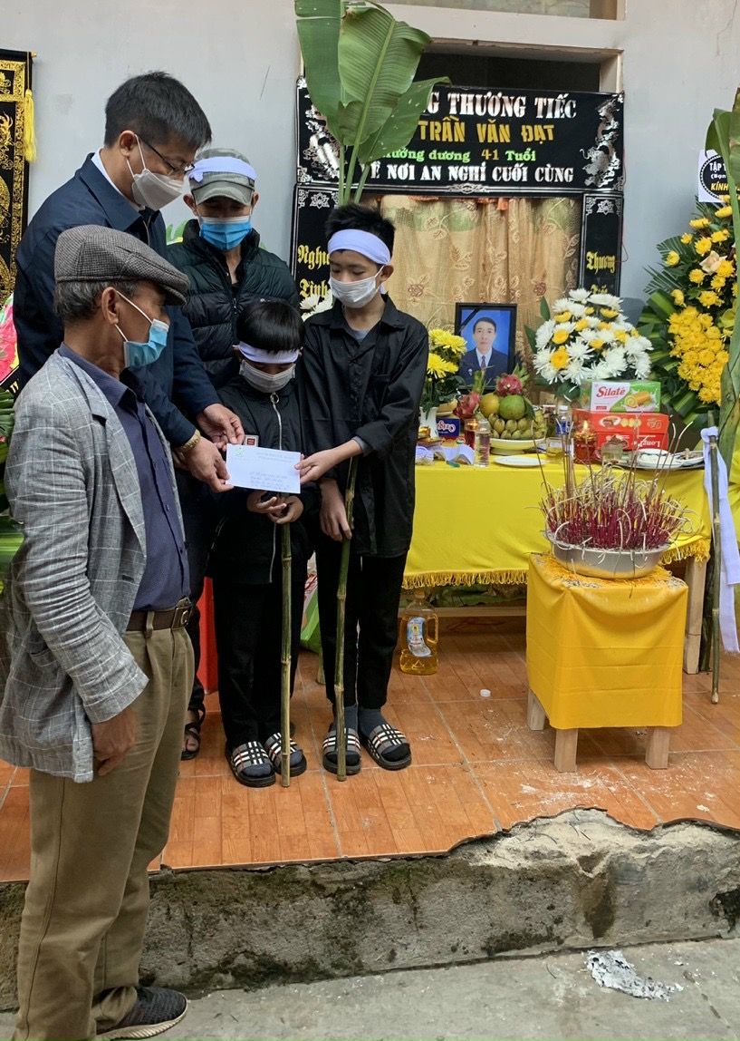 Hiện tại vợ anh đang ở Hà nội, nhà chỉ có 2 cháu nhỏ nên chính quyền lại phải đứng ra quyên góp kêu gọi bà con giúp công và tiền để lo đám tang cho anh
