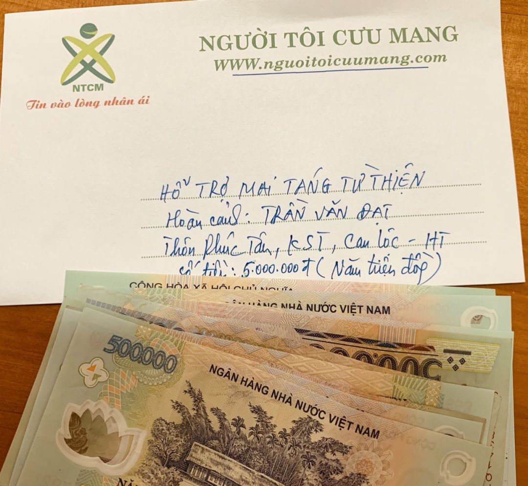 Và chúng ta sẽ giúp đám tang của anh Đạt 5,000,000₫ các bạn nhé.