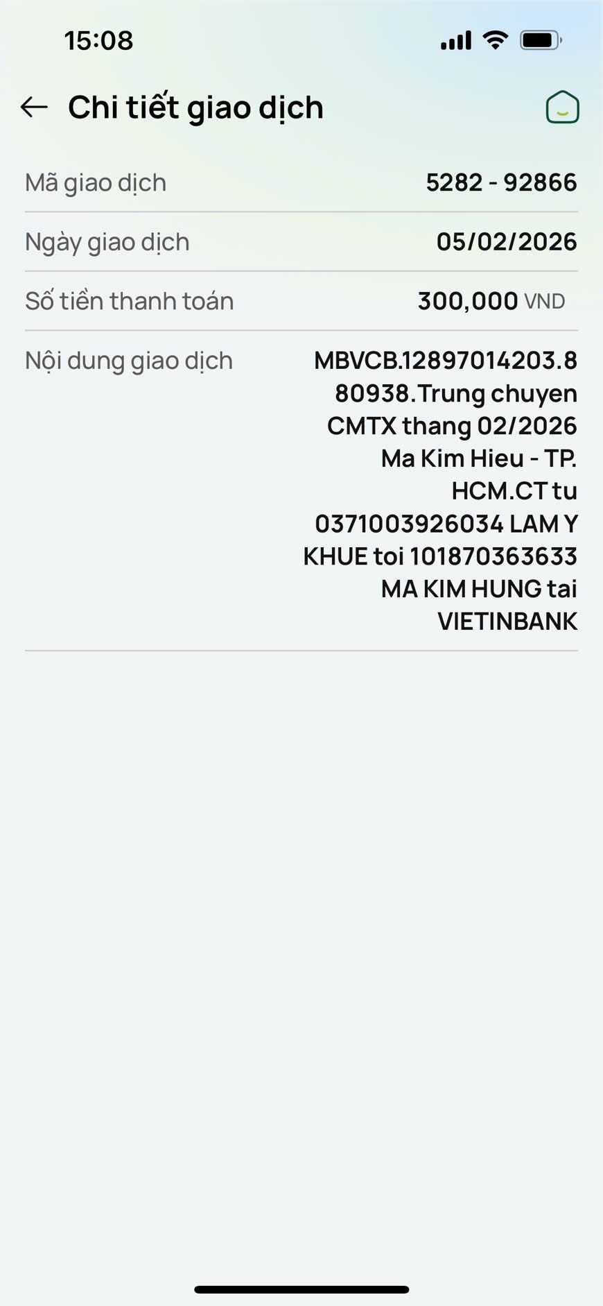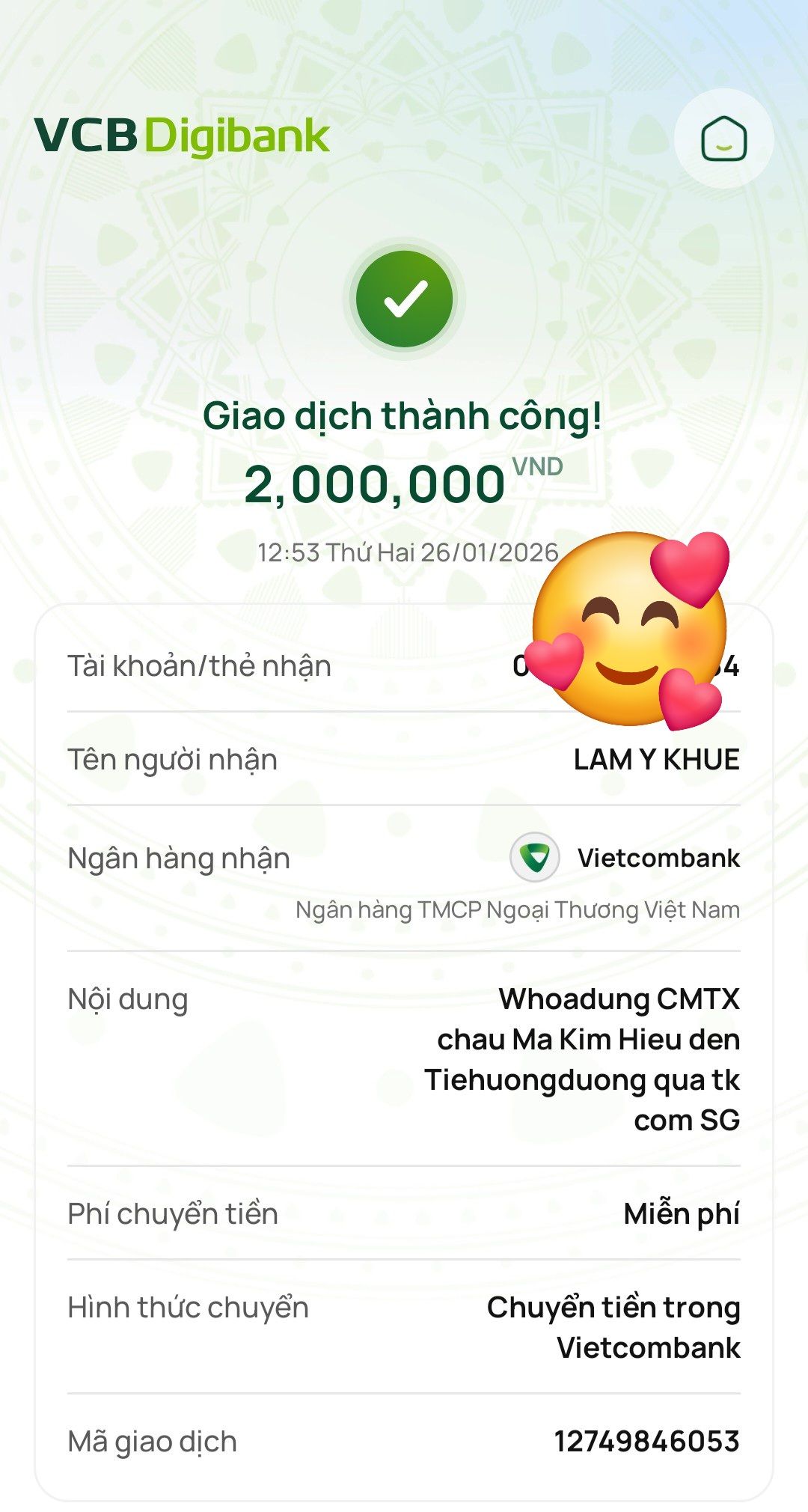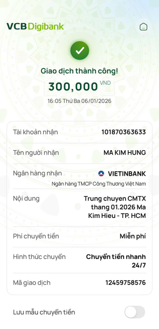Tieuhuongduong cập nhật chuyển tiền 300,000đ CMTX tháng 01/2026.